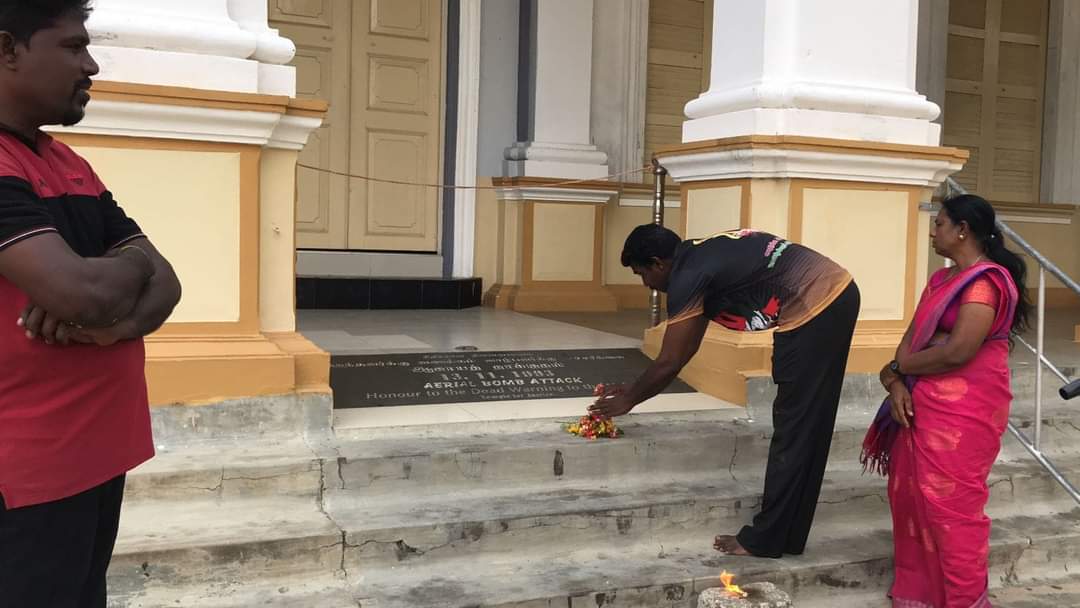 ஈழச்செய்திகள்சிறப்பு செய்திகள் குருநகர் புனித யாகப்பர் ஆலய நினைவிடத்தில் சுடரேற்றி மலர்தூவி நினைவஞ்சலி! By Admin - May 16, 2023 0 194 முள்ளிவாய்க்கால் நினைவேந்தல் வாரத்தில் மனிதப் படுகொலை நடந்த குருநகர் புனித யாகப்பர் ஆலய நினைவிடத்தில் சுடரேற்றி மலர்தூவி தமிழ்த்தேசிய மக்கள் முன்னணியினரால் நினைவஞ்சலி செலுத்தப்பட்டது.