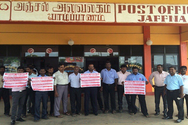 இந்த ஆர்ப்பாட்டம் இன்றைய தினம் யாழ். தபால் நிலையத்திற்கு முன்பாக முன்னெடுக்கப்பட்டது.