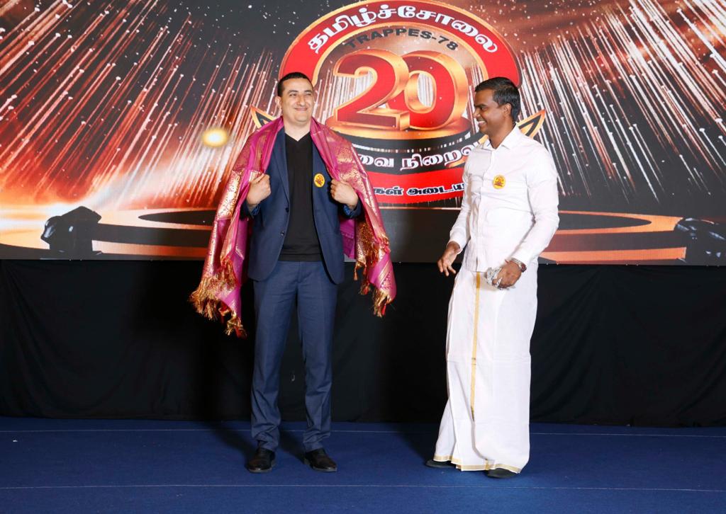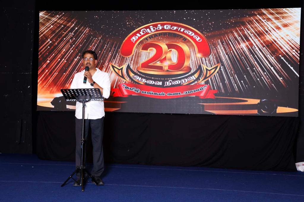 20 ஆண்டுகளாக திறாப் தமிழ்ச்சோலையில் பணியாற்றிய ஆசிரியர்கள், தமிழ்ச்சோலையின் நிர்வாகி திரு. சேத்திரபாலன் அவர்களாலும், பெற்றோர்களாலும் பொன்னாடைகள் போற்றியும், நினைவுபரிசுகளும், மலர்களும் வழங்கி மதிப்பளிக்கப்பட்டனர்.