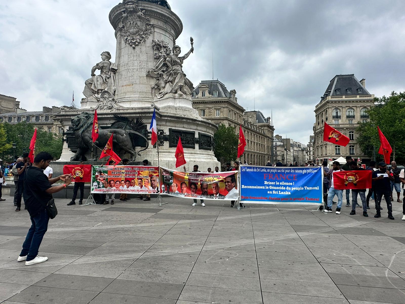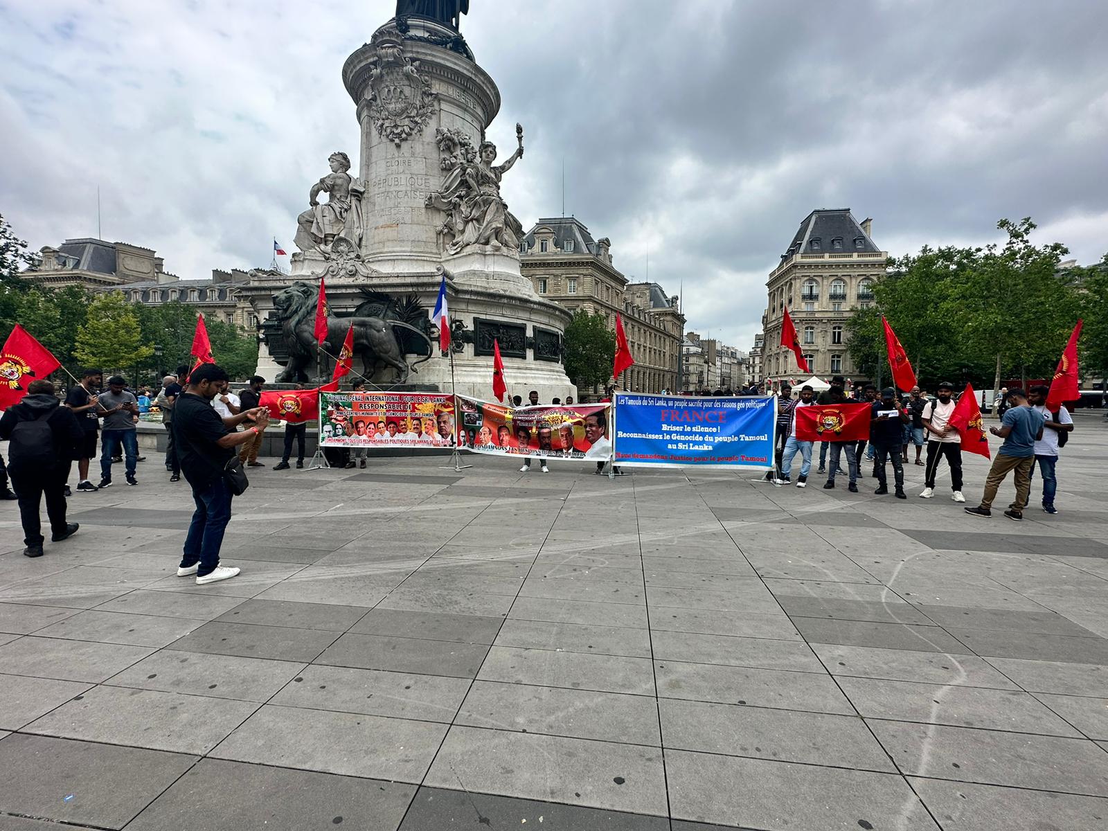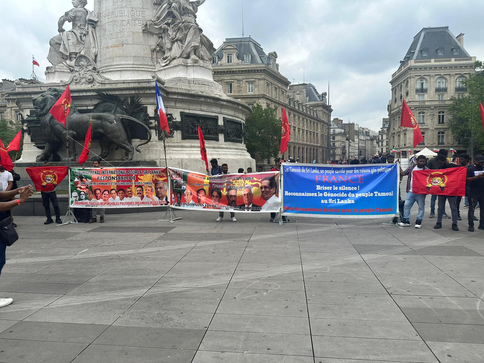 சிறிலங்கா அதிபர் ரணில் விக்கிரம சிங்காவின்பிரான்சு வருகைக்கு எதிரான எதிர்ப்பு ஒன்றுகூடல் இன்று 22.06.2023 வியாழக்கிழமை 14.30 மணிக்கு ஆரம்பமாகி மாலை 17.00 மணிவரை Place de la Republique பகுதியில் இடம்பெற்றது.