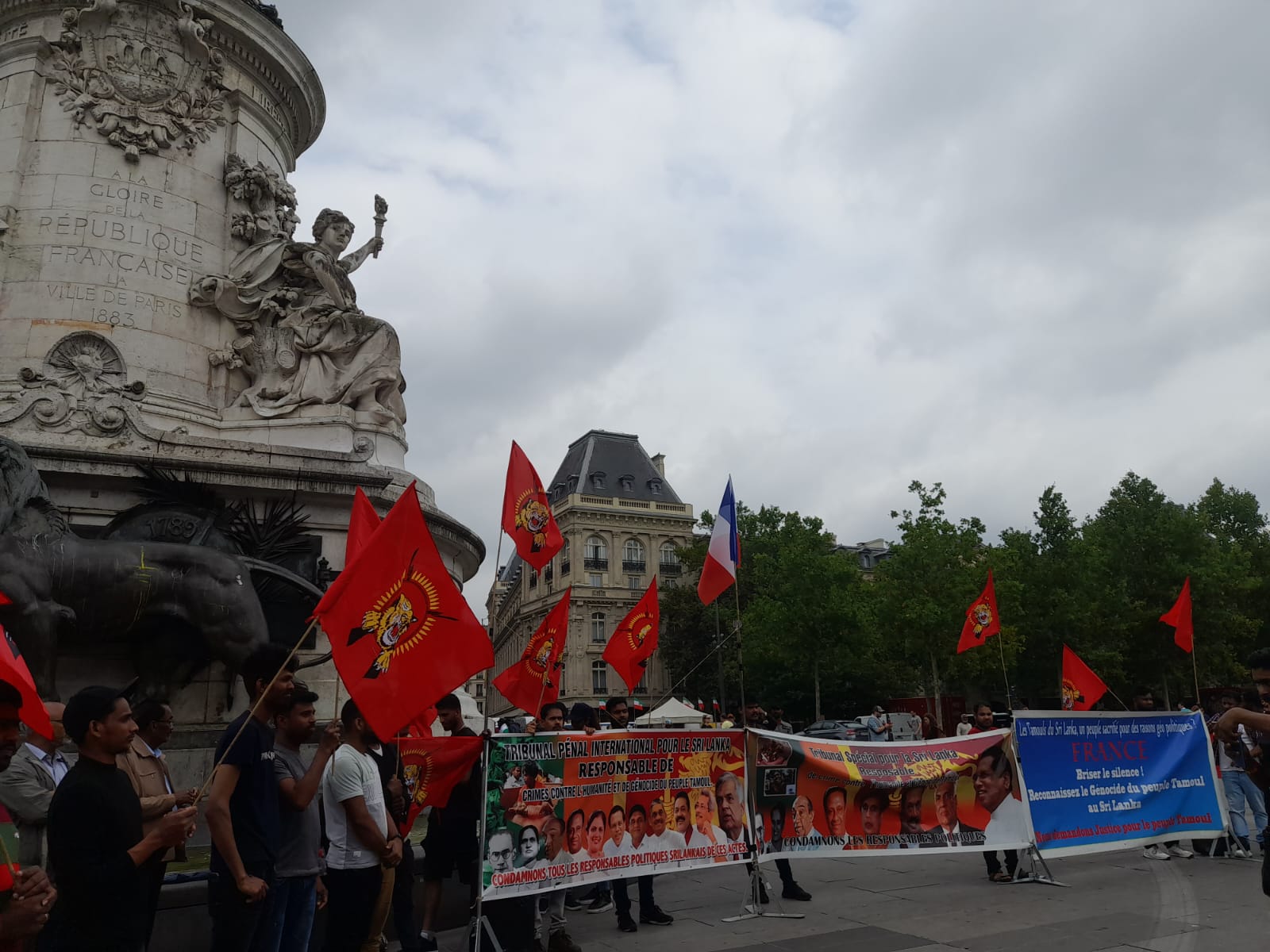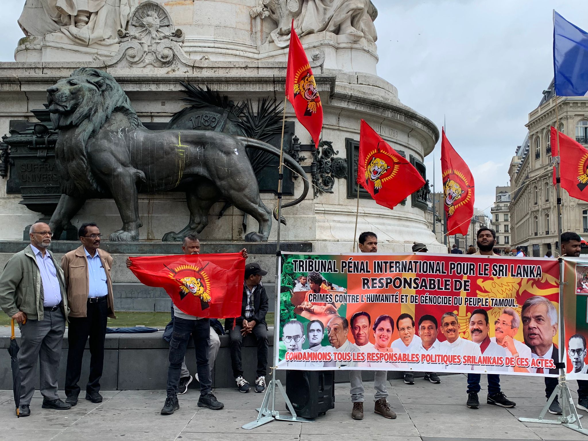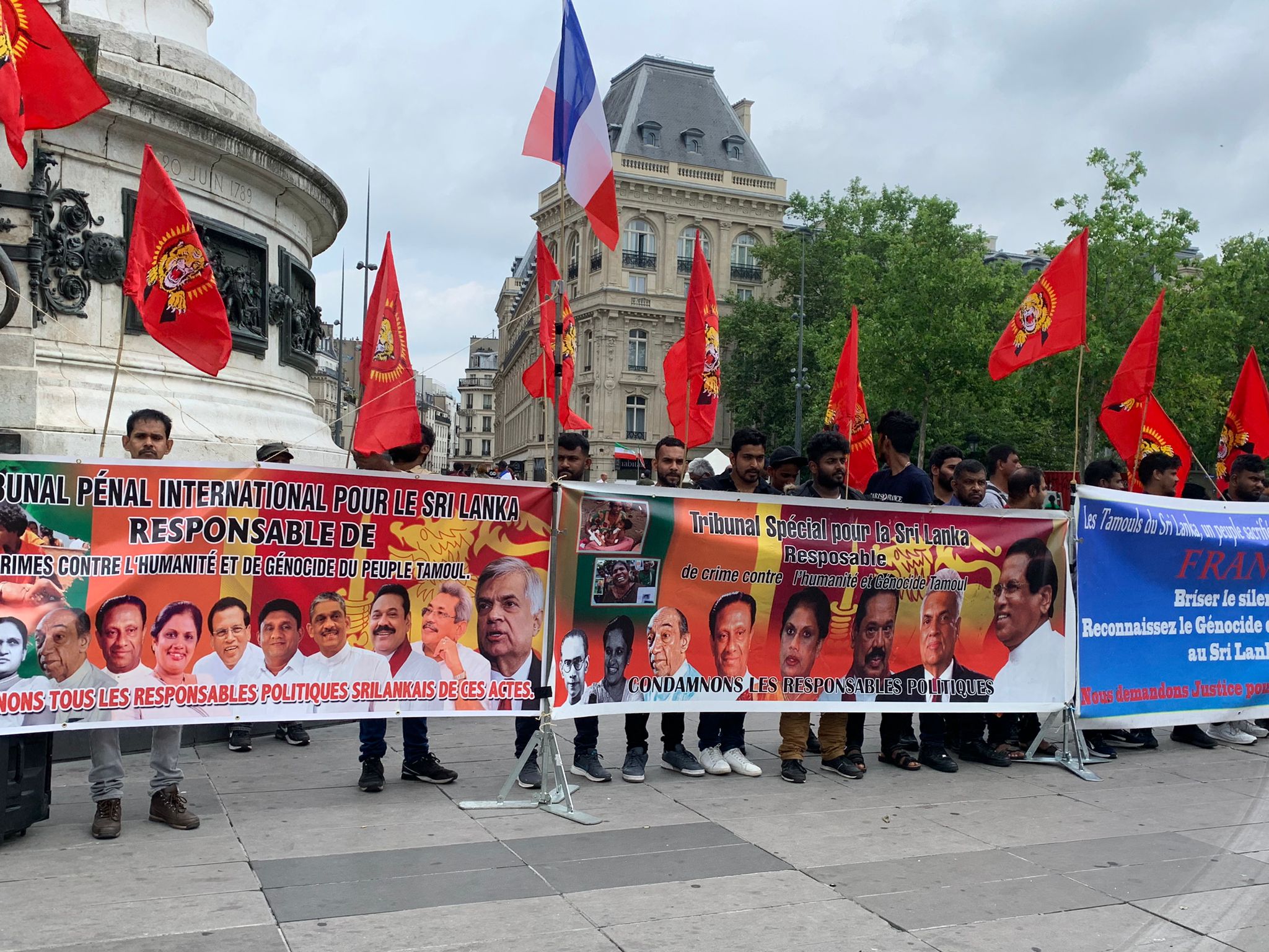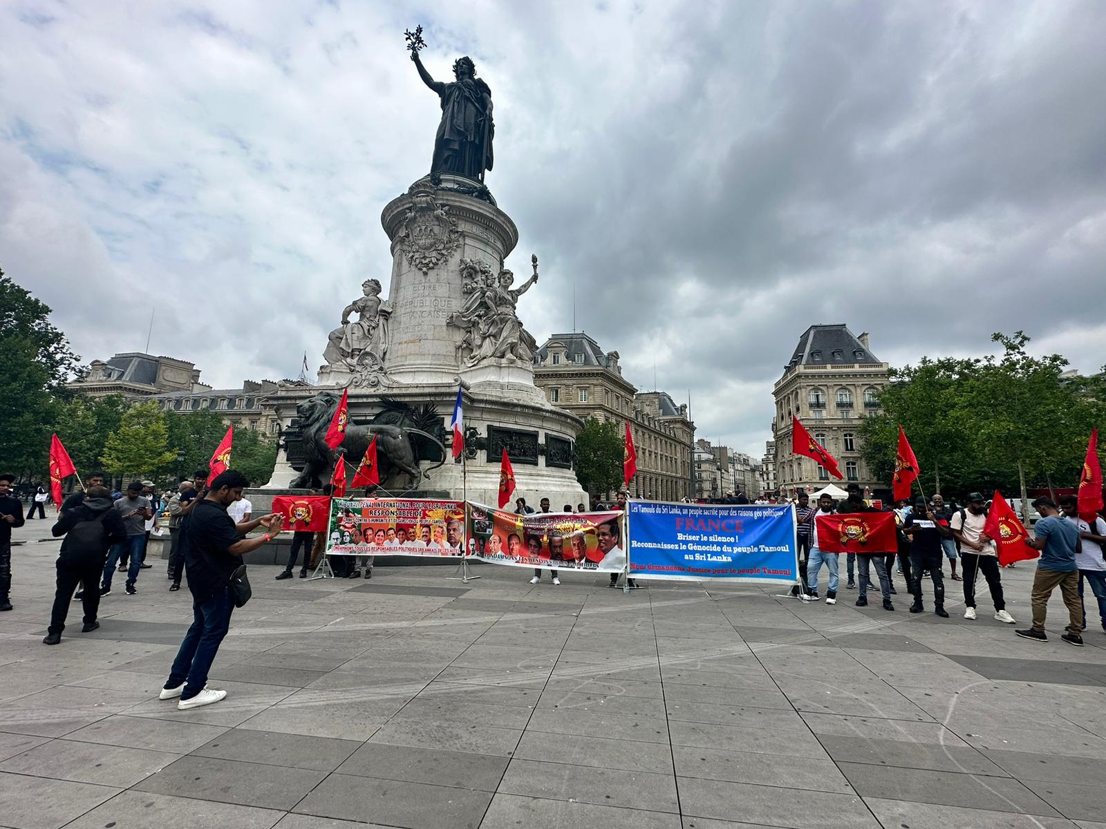 சிறிலங்கா அதிபர் ரணில் விக்கிரம சிங்காவின்பிரான்சு வருகைக்கு எதிரான எதிர்ப்பு ஒன்றுகூடல் இன்று 22.06.2023 வியாழக்கிழமை 14.30 மணிக்கு ஆரம்பமாகி மாலை 17.00 மணிவரை Place de la Republique பகுதியில் இடம்பெற்றது.