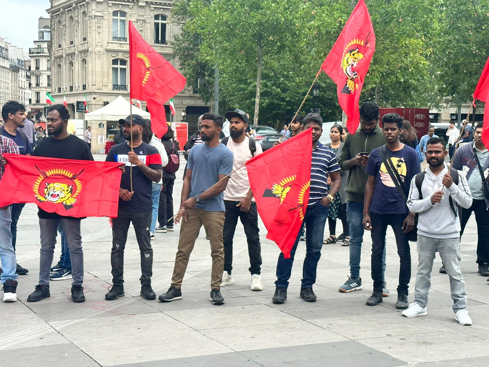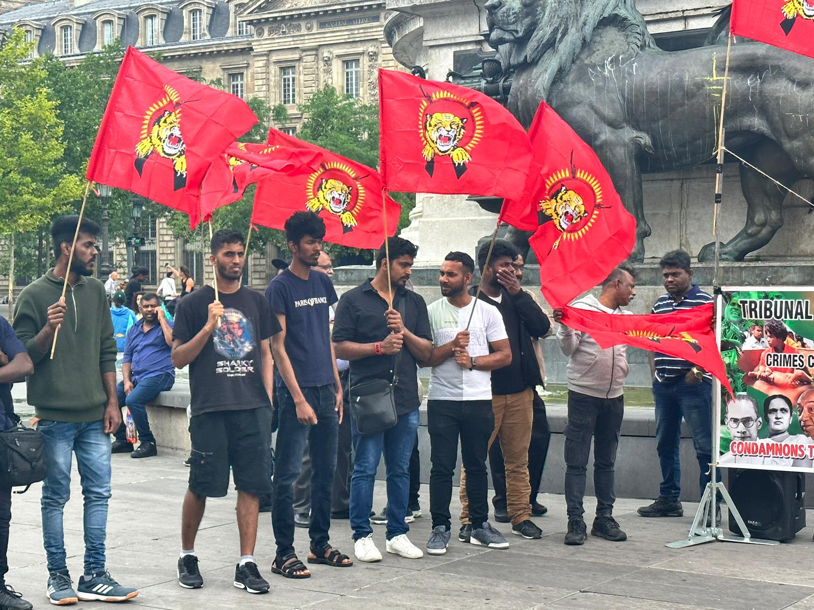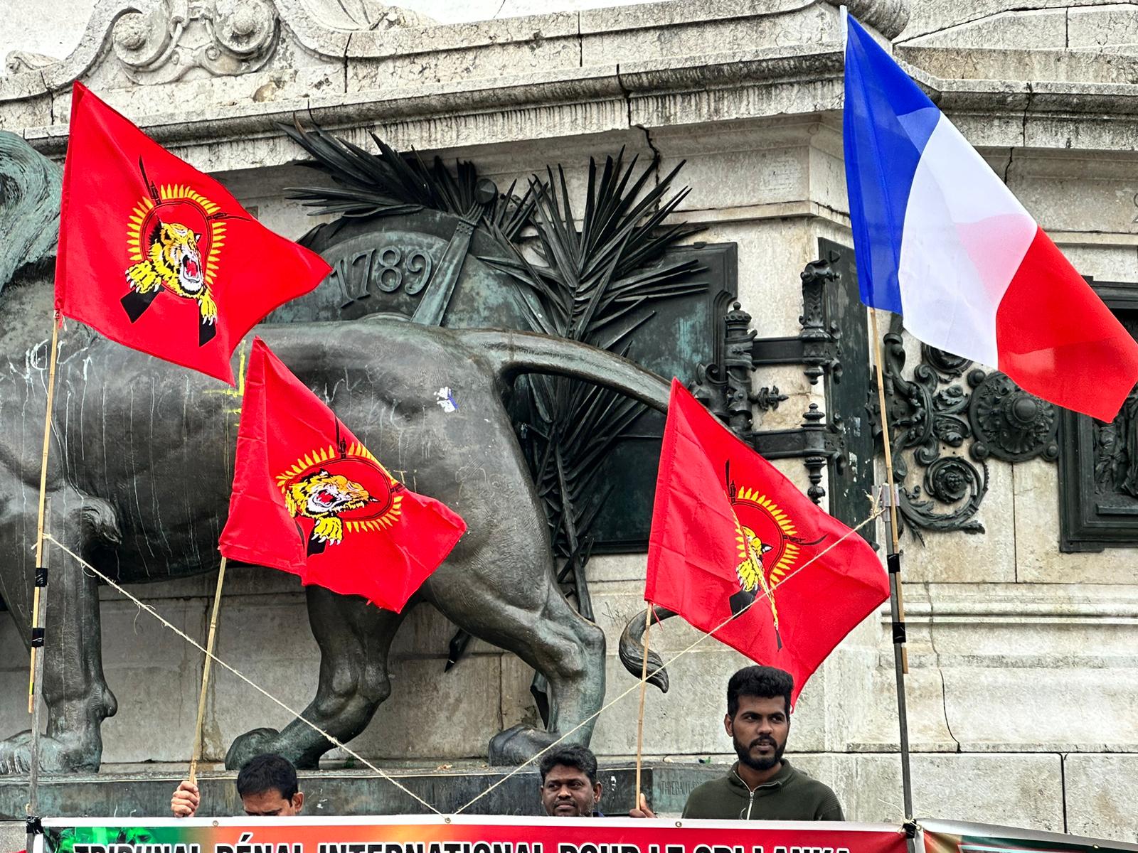பிரான்சு தமிழர் ஒருங்கிணைப்புக் குழு, தமிழ்ச் சங்கங்களின் கூட்டமைப்பு மற்றும் தமிழீழ மக்கள் பேரவை ஆகியவற்றின் ஏற்பாட்டில் இடம்பெற்ற இந்தப் போராட்டத்தில் பதாதைகளை ஏந்தியவாறும் தமிழீழத் தேசியக் கொடிகளை ஏந்தியவாறும் இளையோர்கள் பலரும் முன்னின்று குரல் எழுப்பினர்.