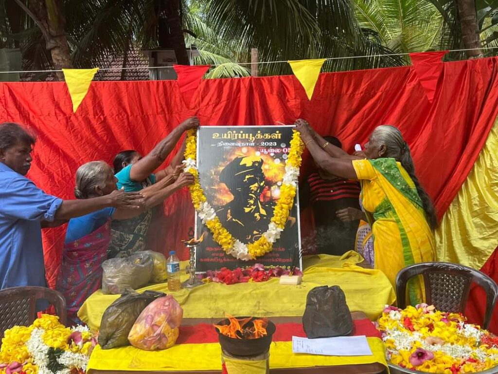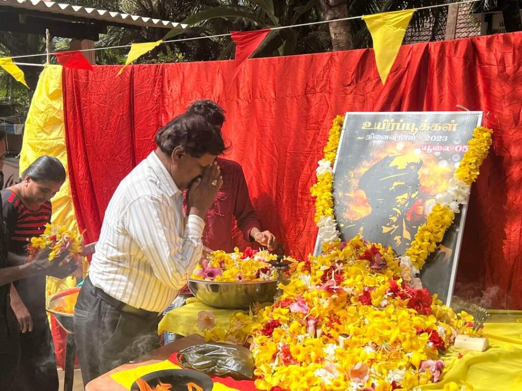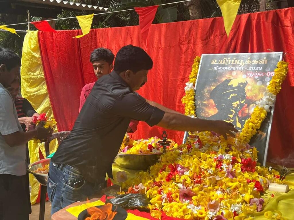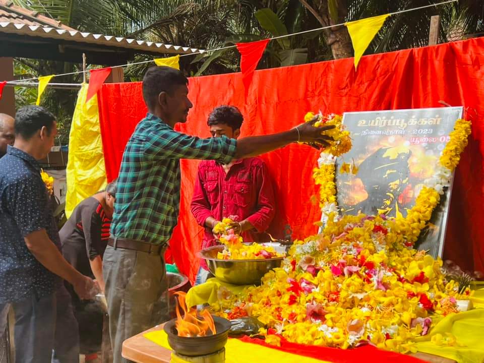 ஈழச்செய்திகள்சிறப்பு செய்திகள் முல்லைத்தீவு – புதுக்குடியிருப்பு தேவிபுரத்தில் இடம்பெற்ற கரும்புலிகள் நாள் நினைவேந்தல்! By Admin - July 5, 2023 0 280 முல்லைத்தீவு – புதுக்குடியிருப்பு தேவிபுரம் பிரதேசத்தில் இன்று கரும்புலிகள் நாள் எழுச்சியாக இடம்பெற்றது. “முகம் காட்டார் முன்னின்று படம்காட்டார் திடம் கொண்ட மனதுடையார் இலக்கை இடம் கண்டு துணிந்து உயிர் நீத்தார்”