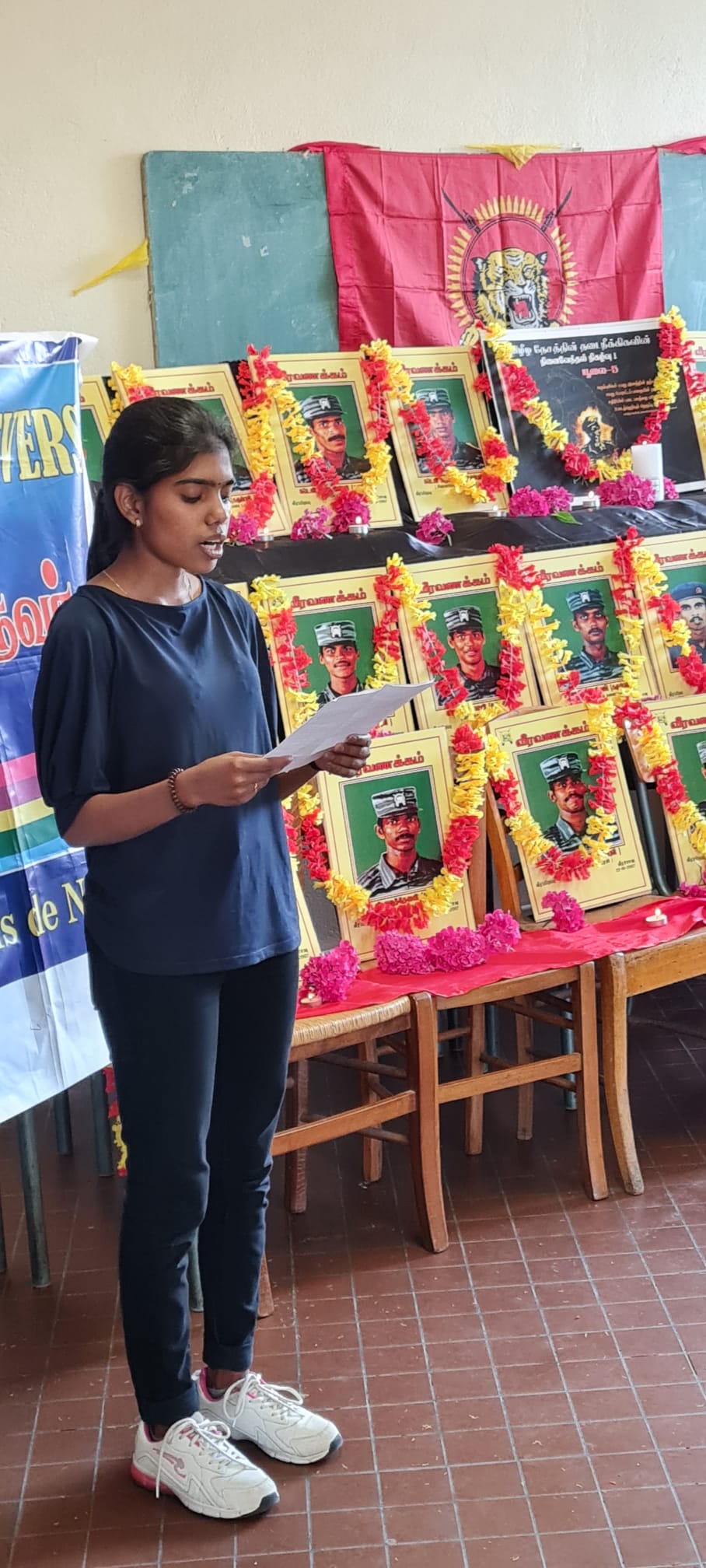 பின்னர் நெவர் பிராங்கோ தமிழ்ச்சங்க பரப்புரைப் பொறுப்பாளர் செல்வி திரேசா கரிசினி அவர்களால் முதற்கரும்புலியாக வீரகாவியமான கப்டன் மில்லரின் வீர வரலாறு கூறப்பட்டப்பட்டது.நெவர் தமிழ்ச் சோலை பள்ளி மாணவனால் ‘கரும்புலி’ எனும் தலைப்பில் கவிதை வடிக்கப்பட்டது.