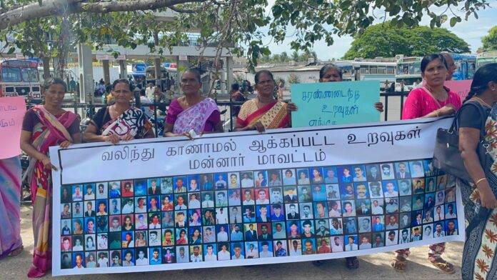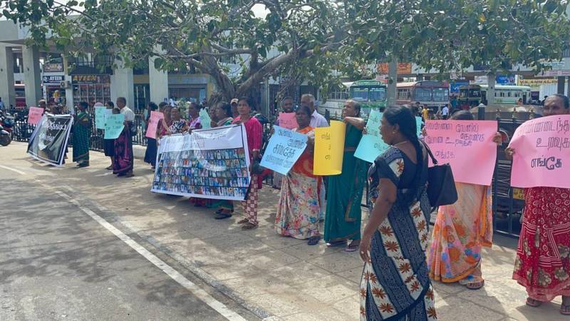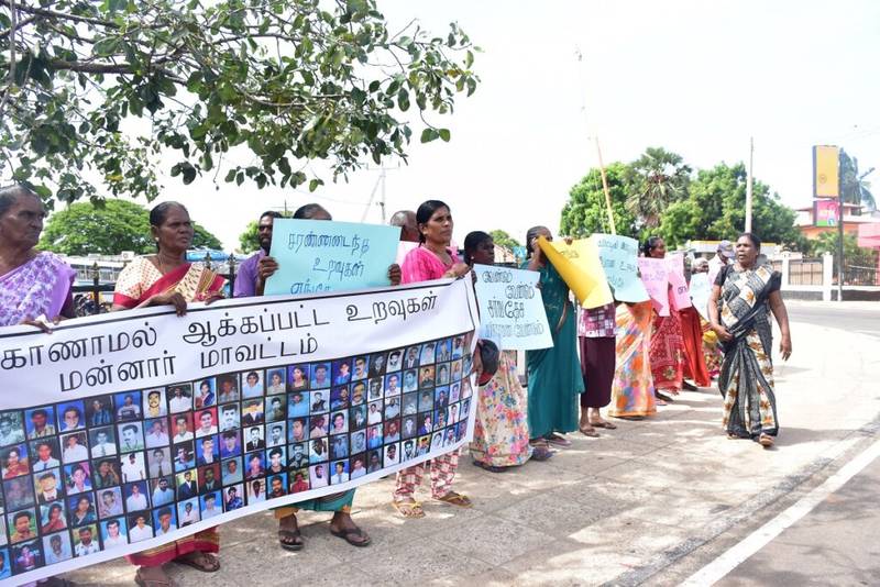 மன்னார் மாவட்ட வலிந்து காணாமல் ஆக்கப்பட்ட உறவுகளை தேடும் குடும்பங்களின் சங்கத்தின் ஏற்பாட்டில், மன்னார் பஜார் பகுதியில் இன்று காலை 11 மணியளவில் கவனயீர்ப்பு போராட்டம் ஒன்று முன்னெடுக்கப்பட்டது.