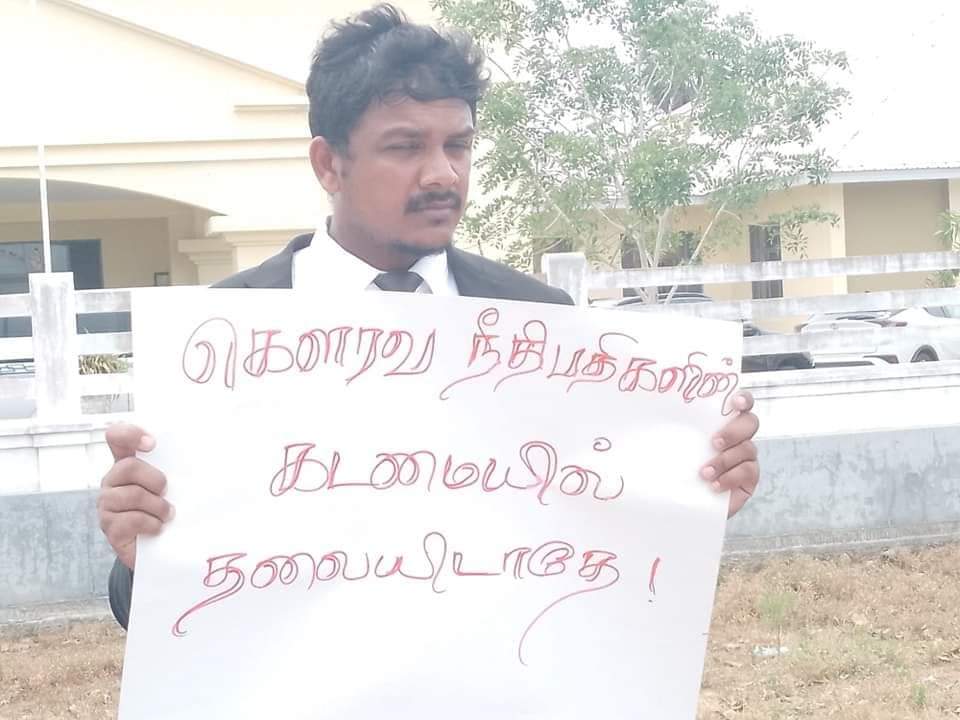 ஈழச்செய்திகள்சிறப்பு செய்திகள் தமிழ் நீதிபதிகள் அச்சுறுத்தப்பட்டமைக்கு எதிர்ப்புத் தெரிவித்து முல்லைத்தீவில் போராட்டம்! By Admin - July 11, 2023 0 255 பௌத்த சிங்கள கடும்போக்கு இனவாதியான சரத் வீரசேகரவினால் தமிழ் நீதிபதிகள் மற்றும் சட்டத்தரணிகள் அச்சுறுத்தப்பட்டமைக்கு எதிர்ப்புத் தெரிவித்து இன்று செவ்வாய்க்கிழமை முல்லைத்தீவில் சட்டத்தரணிகள் போராட்டத்தில் குதித்துள்ளனர்.