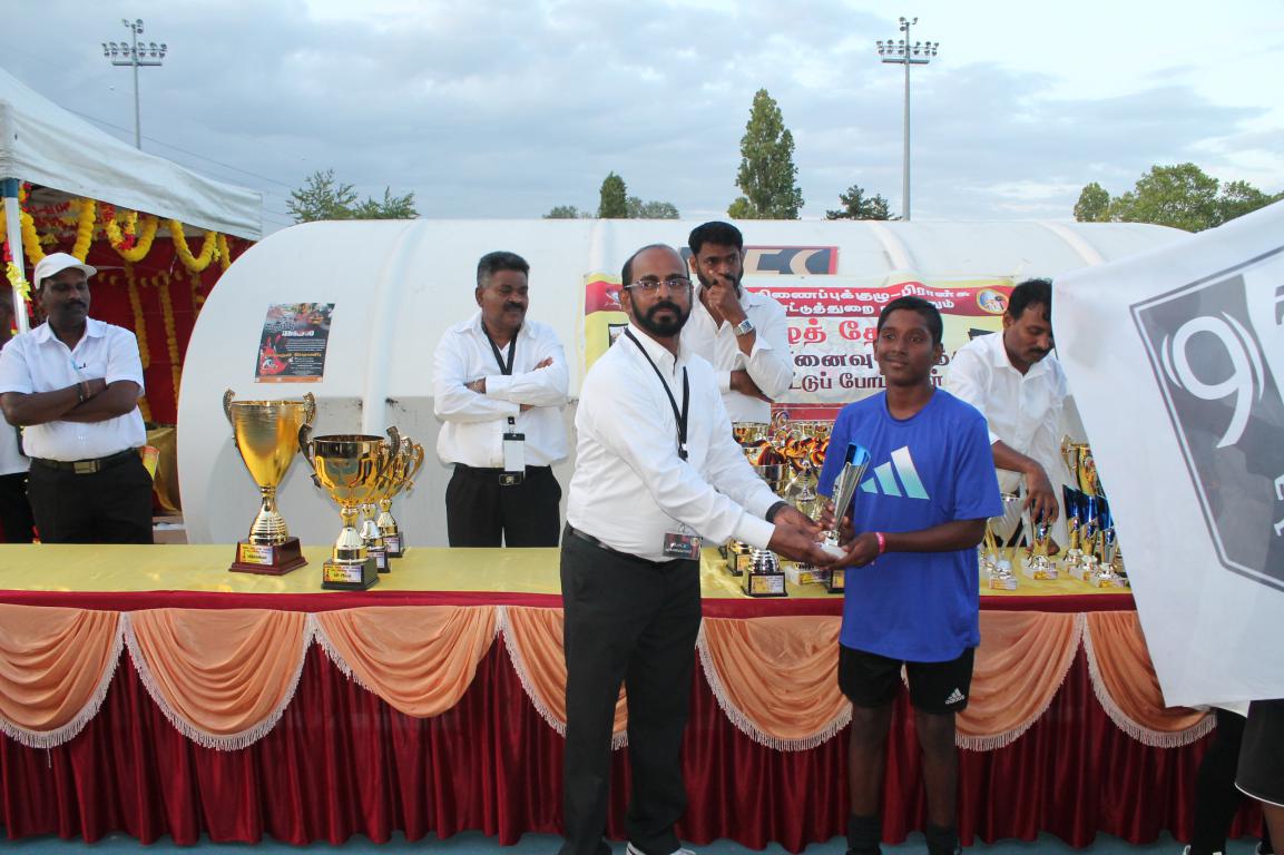 தொடர்ந்து வெற்றிபெற்ற கழகங்களுக்கும் வீரர்களுக்கும் வெற்றிக்கிண்ணமும் பதக்கமும் வழங்கி மதிப்பளிக்கப்பட்டனர்.