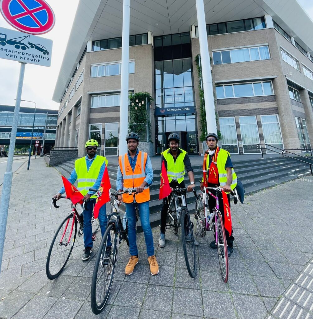 2009ம் ஆண்டு தமிழீழ தேசத்தில் ஆயுதப் போராட்டம் மெளனிக்கப்பட்டதும் தமிழர்களின் போராட்ட வடிவம் இக்கால கட்டத்தின் தேவைப்படி அறவழிக்களமாக உருப்பெற்றது. அந்தவகையில் ஜெனிவாவில் அமைந்துள்ள ஐ.நா மனித உரிமைகள் பேவையின் 54வது கூட்டத்தொடர் ஆரம்பமாகவுள்ள நிலையில், எமது நீதிக்கான மனித நேய ஈருருளிப்பயணம் நேற்று (02.09.2023) நெதர்லாந்தின் ஊடாக பயணித்து றொட்டாம் மாநகரிலிருந்து காலை அகவணக்கத்துடன் ஆரம்பித்து, மக்கள் பேராதரவோடு எழுச்சிப் பயணத்தினை தொடர்ந்து மாலை பிறேடா மாநிலத்தில் நிறைந்துள்ளது.இப்பயணம் பெல்சியம் நாட்டின் எல்லையினை அண்மித்துக்கொண்டு இருக்கின்றது.