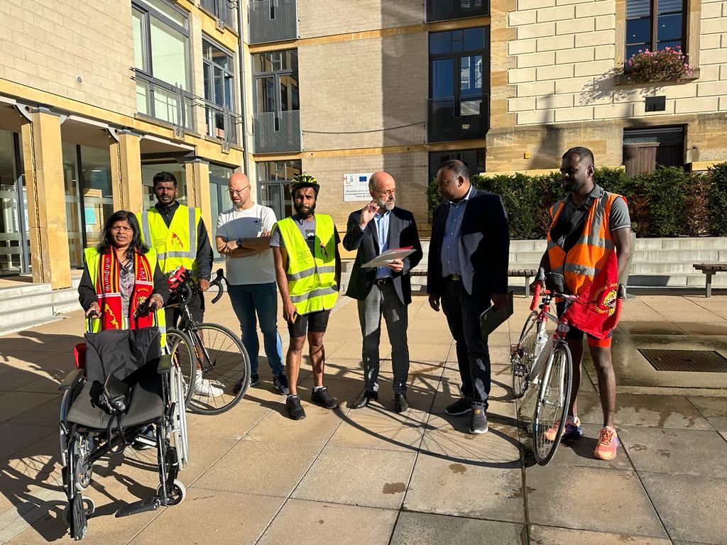 பிரித்தானியாவில் இருந்து ஆரம்பித்து நெதர்லாந்தின் ஊடாக பயணித்து தற்போது பெல்சியத்தில் தொடர்ந்துகொண்டிருக்கும் மனித நேய ஈருருளிப்பயணம் இன்று காலை (06.09.2023) ஆர்லொன் நகரத்திலிருந்து அகவணக்கத்துடன் ஆரம்பமாகி, ஆர்லொன் நகரசபையில் சந்திப்பு நடைபெற்றதோடு தொடரும் தமிழின அழிப்பு சார்ந்த மனு கையளிப்பும் நடைபெற்றது.