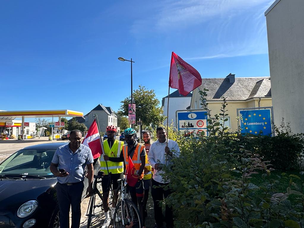 தொடர்ந்தும் அறவழிப்போராட்ட செயற்பாட்டாளர்கள் கடுமையான வெப்பக்காலநிலைக்கு மத்தியில் பயணம் செய்து லூட்சம்பேர்க் எல்லையினைத்தாண்டி உணர்வெழுச்சியுடன் ஈருருளிப்பயணத்தை தொடர்கின்றனர்.தமிழின அழிப்பிற்கு அனைத்துலக சுயாதீன விசாரணை வேண்டியும் ,நீதிகேட்டும் தமிழீழமே எமக்கான அரசியல் தீர்வு என்பதனை வலியுறுத்தியும், அறவழியில் ஈருருளிப்பயணத்தினை மேற்கொள்ளும் செயற்பாட்டாளர்களை அன்புடன் வரவேற்று,தமிழர்கள் என்ற உணர்வுடன் இறுகப்பற்றி,இணைந்து பயணிக்க அன்புரிமையுடன் அழைக்கிறோம்.