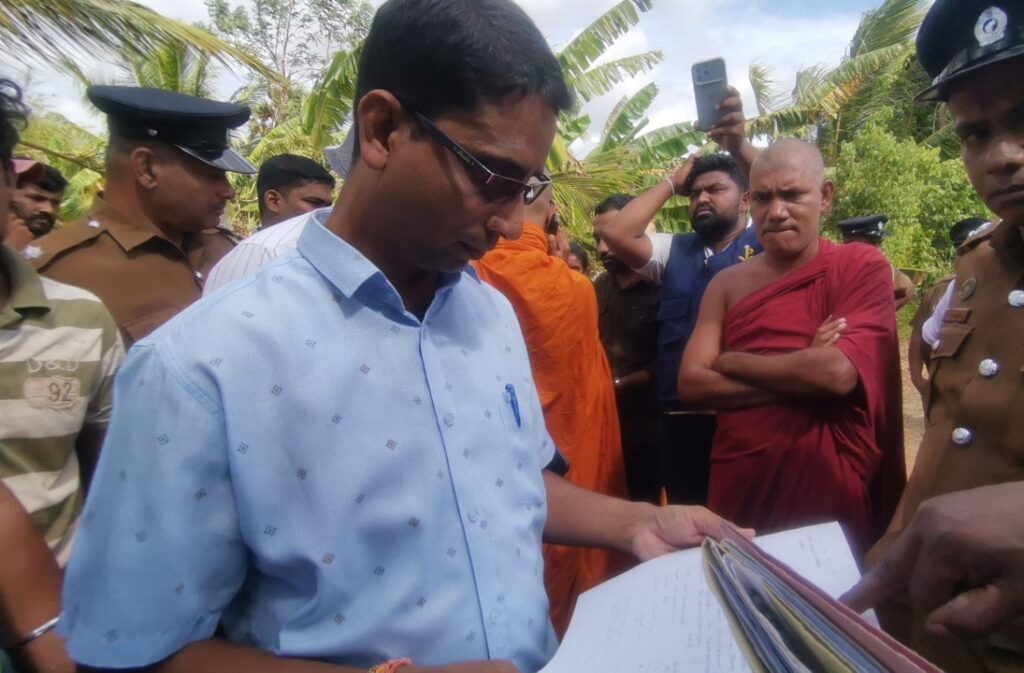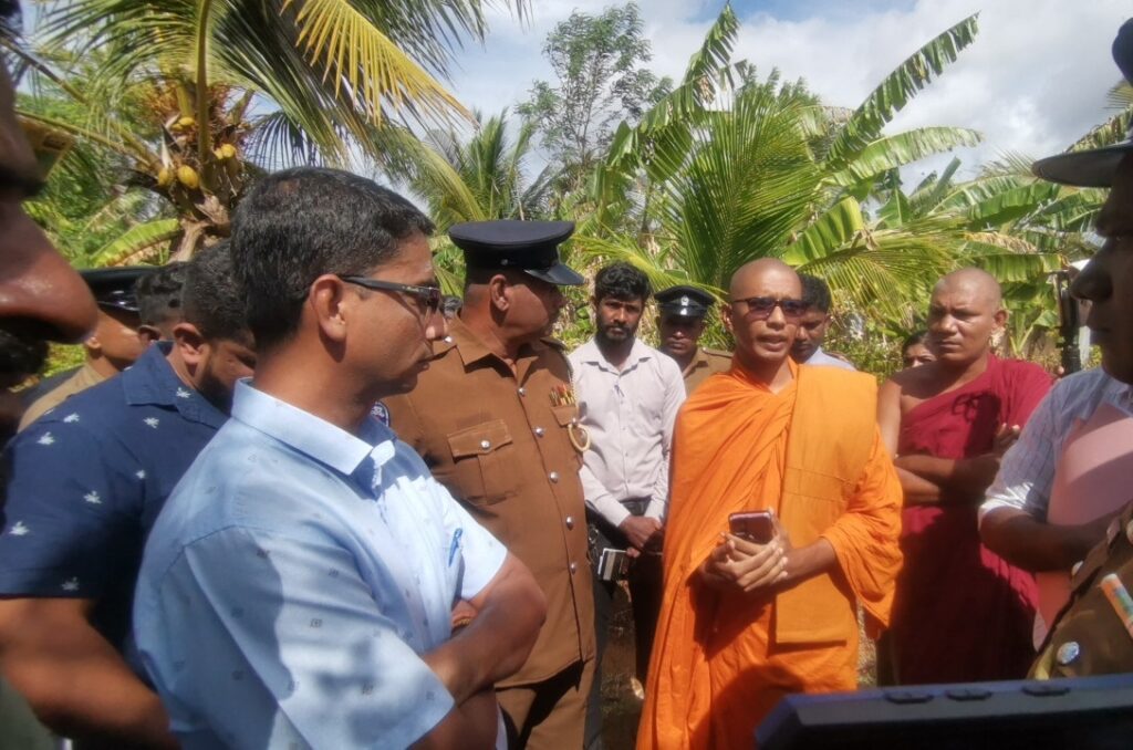 எனவே இங்கு மயானம் அமைக்கும் செயற்பாட்டை முன்னெடுப்பது நீதியான செயற்ப்பாடாக தெரியவில்லை” எனத் தெரிவித்துள்ளார்.இதேவேளை, குறித்த பகுதிக்கு பிக்கு இருவரின் தலைமையில் வருகை தந்த சிங்கள மக்கள் குறித்த காணியில் தங்களது மூதாதையர்கள் புதைக்கப்பட்டுள்ளதாகவும், அந்த காணியில் மயானம் அமைப்பதற்காக அதனை மீட்டுத்தருமாறும் பிரதேச செயலாளரிடம் தெரிவித்துள்ளனர்.