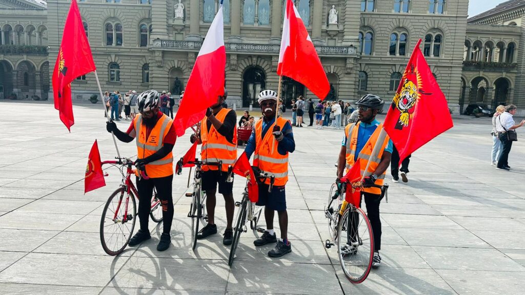 தொடர்ச்சியாக 27வது தடவையாக பயணித்து வரும் இப்போராட்டம் நேற்று 15/09/2023 பேர்ன், மாநகரத்தில் சுவிஸ் வெளிநாட்டு வெளிவிவகார அமைச்சின் அலுவலகத்தில் சந்திப்பை மேற் கொண்டதுடன் சம நேரத்தில் முதல்வரினையும் சந்தித்து மனு ஒப்படைக்கப்பட்டது. அதனைத்தொடர்ந்து இன்று 16/09/2023 பிறிபோர்க் மாநகர மக்களை சந்தித்து தம் அனுபவங்களை பகிர்ந்தபின் லவுசான் மாநகரம் நோக்கி தமது அறவழிப் போராட்டத்தினை தொடர்ந்தனர்.