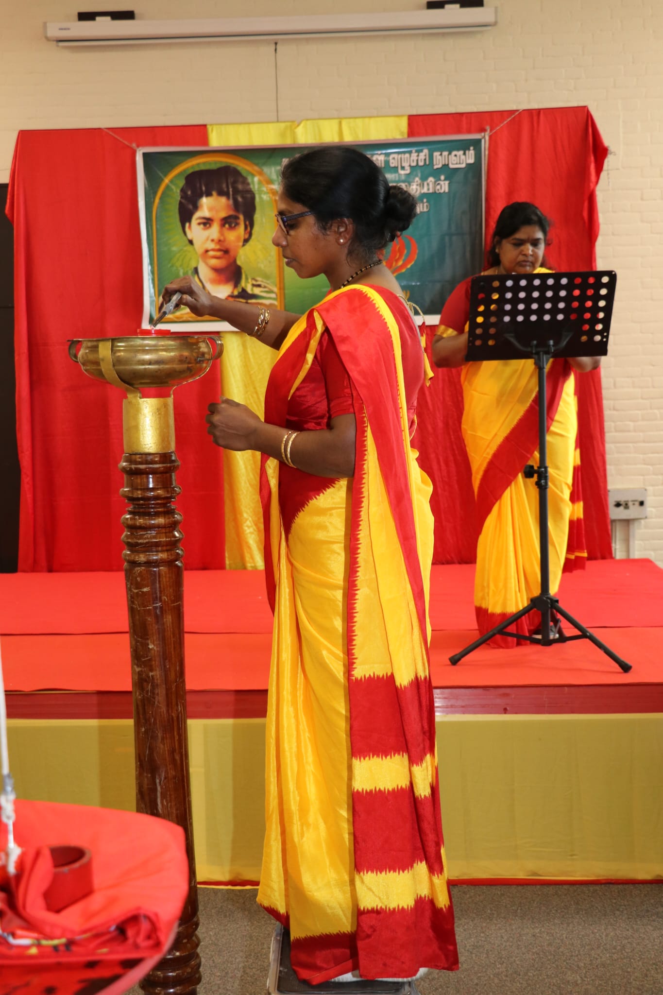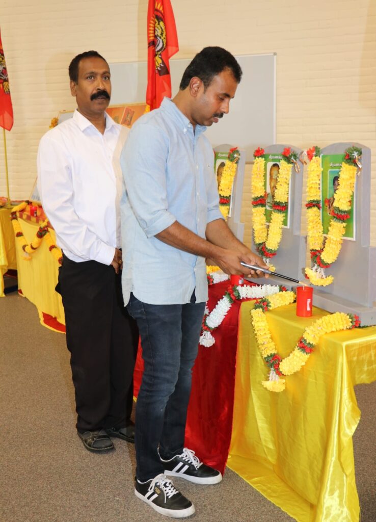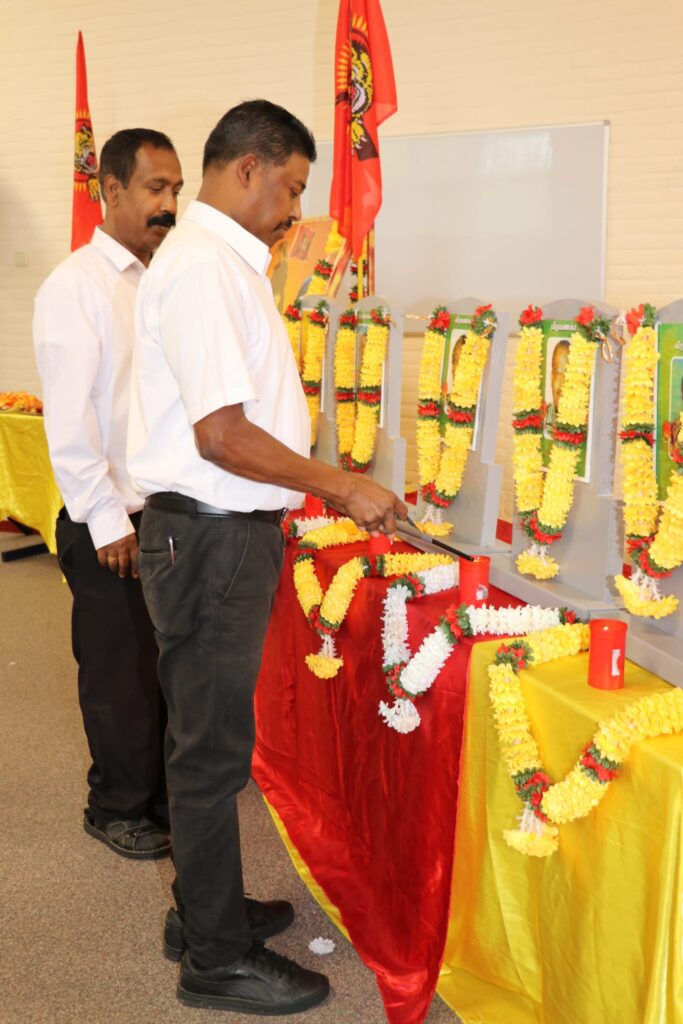 பொதுச்சுடரேற்றப்பட்டு பின் தமிழீழத் தேசியக்கொடி ஏற்றப்பட்டதைத் தொடர்ந்து பொது ஈகைச்சுடரும் தொடர்ந்து 2ம் லெப்ரினன் மாலதி அவர்களின் திருவுருவப் படத்திற்கும் லெப்.கேணல் குமரப்பா,லெப்.கேணல் புலேந்திரன் உள்ளிட்ட பன்னிரு வேங்கைகளின் திருவுருவப் படத்திற்கும் லெப்.கேணல் சந்தோஷம், லெப்.கேணஸ் நாதன், கப்ரன் கஜன், கேணல். ராயூ ஆகிய மாவீரர்களின் திருவுருவப் படங்களுக்கும். ஈகைச்சுடர்கள் ஏற்றப்பட்டன. அதனைத் தொடர்ந்து