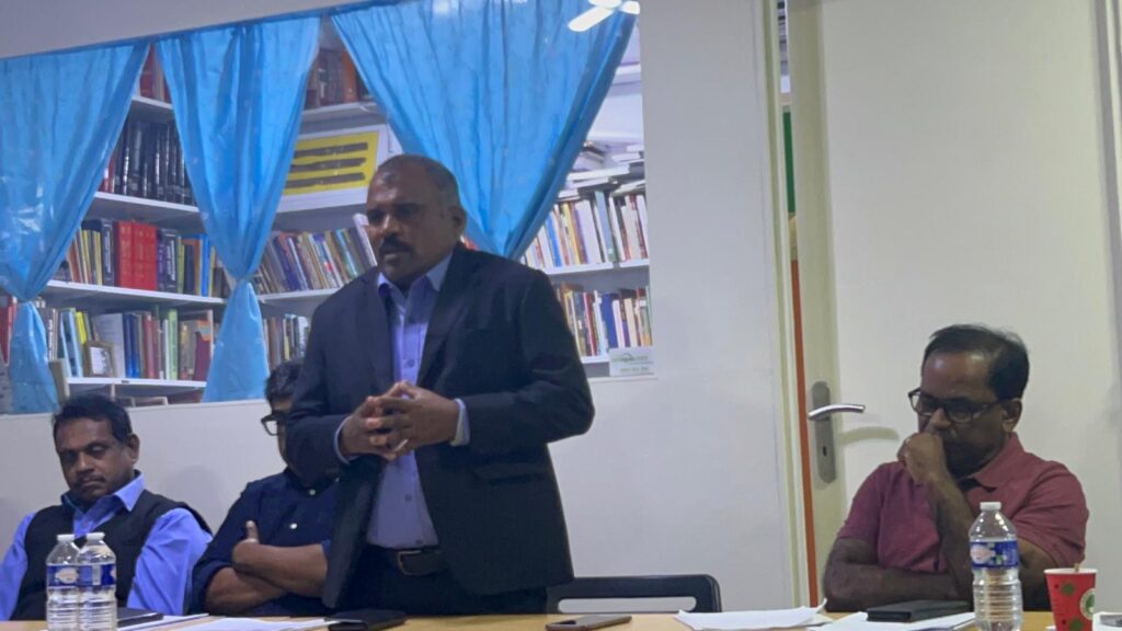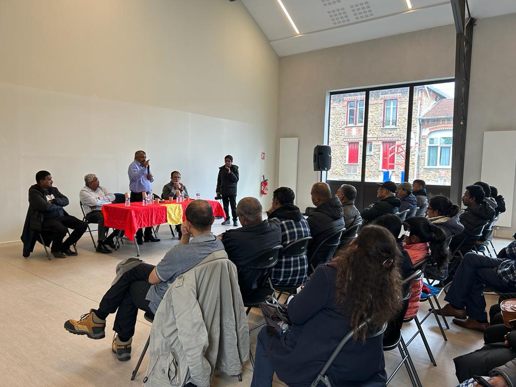 தமிழ்த் தேசிய மக்கள் முன்னணியின் செயலாளரும், நாடாளுமன்ற உறுப்பினருமாகிய திரு. செல்வராசா கஜேந்திரன் அவர்களின் தமிழ்மக்களுடனான சந்திப்பு 25.10.2023 புதன்கிழமை பாரிசின் புறநகர் பகுதியில் ஒன்றான செவரோன் நகரில் மாநகரசபை மண்டபத்தில் நடைபெற்றது. தாயகத்தின் சமகால அரசியல் நிலைப்பாடுகள் பற்றியும், புலம்பெயர்ந்த தமிழ்மக்கள் அரசியல் சனநாயக ரீதியில் என்ன செய்ய வேண்டும் என்பது பற்றியும் தெரிவித்திருந்தார்.