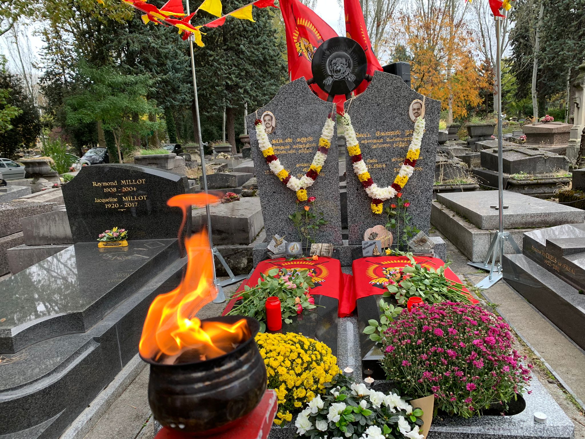 பிரான்ஸ் தலைநகர் பரிசில் வைத்து 26.10.1996 அன்று சிறீலங்கா அரச கைக்கூலிகளின் தாக்குதலில் வீரச்சாவைத் தழுவிக்கொண்ட தமிழீழ விடுதலைப் புலிகளின் அனைத்துலக நிதிப்பொறுப்பாளர் லெப்.கேணல் நாதன் மற்றும் ஊடகப்போராளியும் ஈழமுரசின் நிறுவன ஆசிரியருமான கப்டன் கஜன் ஆகியோரின் 27ஆம் ஆண்டு நினைவேந்தல் நிகழ்வு (26.10.2023) வியாழக்கிழமை பிரான்சில் இம் மாவீரர்களின் கல்லறை அமைந்துள்ள பந்தன் துயிலும் இல்லத்தில் இடம்பெற்றது.