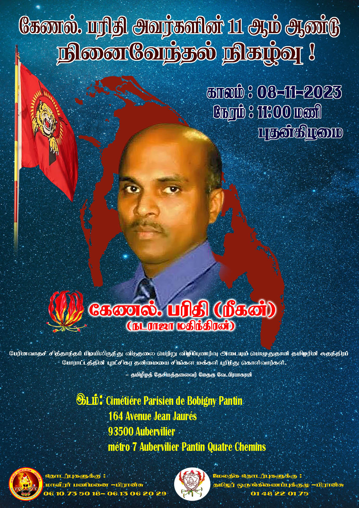 தொடர்புகளுக்கு: மாவீரர் பணிமனை-பிரான்சு / 06 10 73 50 18-06 13 06 20 29
