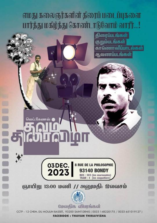 சிறப்பு செய்திகள் பிரான்சில் லெப்.கேணல் தவம் நினைவாக திரைவிழா 03-12 2023! By Admin - November 17, 2023 0 128 எமது கலைஞர்களின் படைப்புக்களை வளர்க்கவும், அவர்களை ஊக்கப்படுத்துவும் அவர்களின் படைப்புக்களைப்பார்த்து மகிழ்ந்து கொண்டாடுவோம் வாருங்கள்.