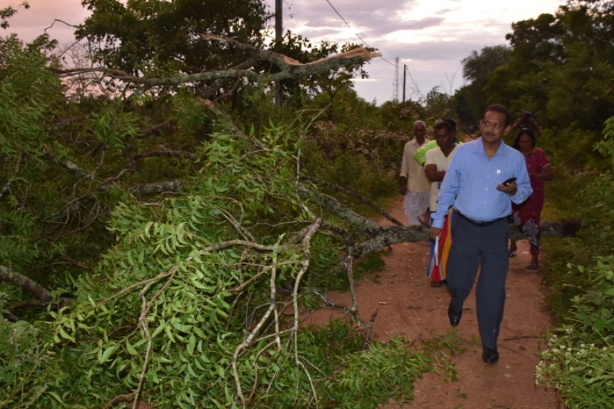 மேலும், சூறாவளி காரணமாக பயன்தரு மரங்களும் விழுந்துள்ளதுடன் சில இடங்களில் வீதிகளிலும் மரங்கள் முறிந்து வீழ்ந்துள்ளதனால் போக்குவரத்து செய்வதில் மக்கள் சிரமங்களை எதிர்நோக்கியுள்ளனர்.