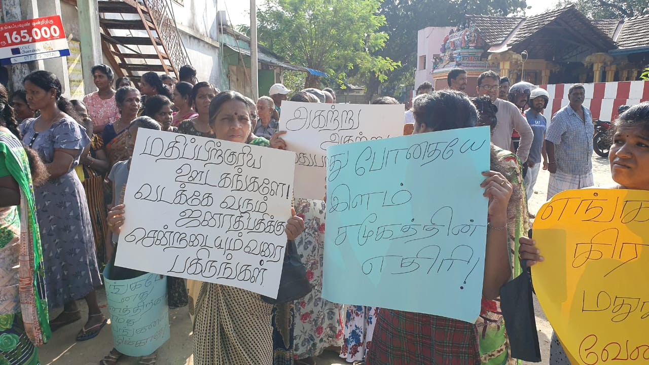 யாழ்ப்பாணம் – உடுப்பிட்டி பகுதியில் உள்ள மதுபானசாலைக்கு எதிராக கண்டனப் போராட்டம் இன்று காலை முன்னெடுக்கப்பட்டது. உடுப்பிட்டி சந்தியில் நடைபெற்ற போராட்டத்தில் பெருமளவானவர்கள் கலந்துகொண்டனர். இதற்கு வலுச்சேர்க்கும் வகையில் உடுப்பிட்டி பகுதியில் கடையடைப்பும் இடம்பெற்றது.