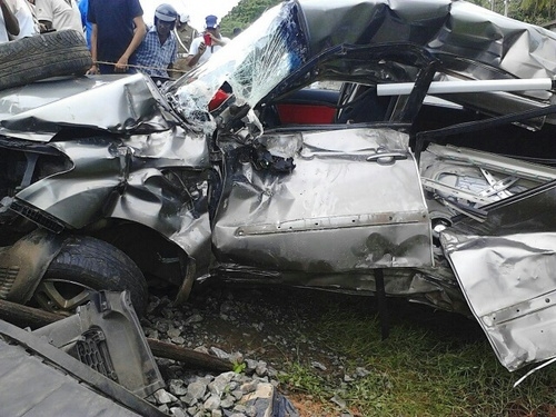 விபத்துக்கு உள்ளான மகிழுந்து கச்சேரி நல்லூர் வீதியில் இருந்து இழுத்துச் செல்லப்பட்டு சோமசுந்தரம் அவென்னியு கடவையில் வீசப்பட்டுள்ளது.