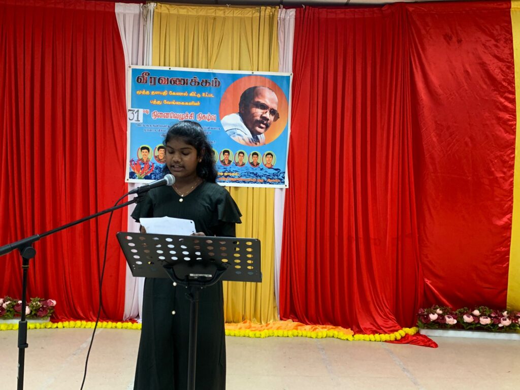 சிறப்புரையை தமிழர் புனர்வாழ்வுக்கழகப் பொறுப்பாளர்சுந்தரவேல் அவர்கள் நிகழ்த்தியிருந்தார்.இறுதியில் நம்புங்கள் தமிழீழம் நாளைபிறக்கும் என்ற பாடலுடனும் தமிழரின் தாகம் தமிழீழத் தாயகம் என்ற மந்திரத்துடன் நிகழ்வு நிறைவடைந்தது.