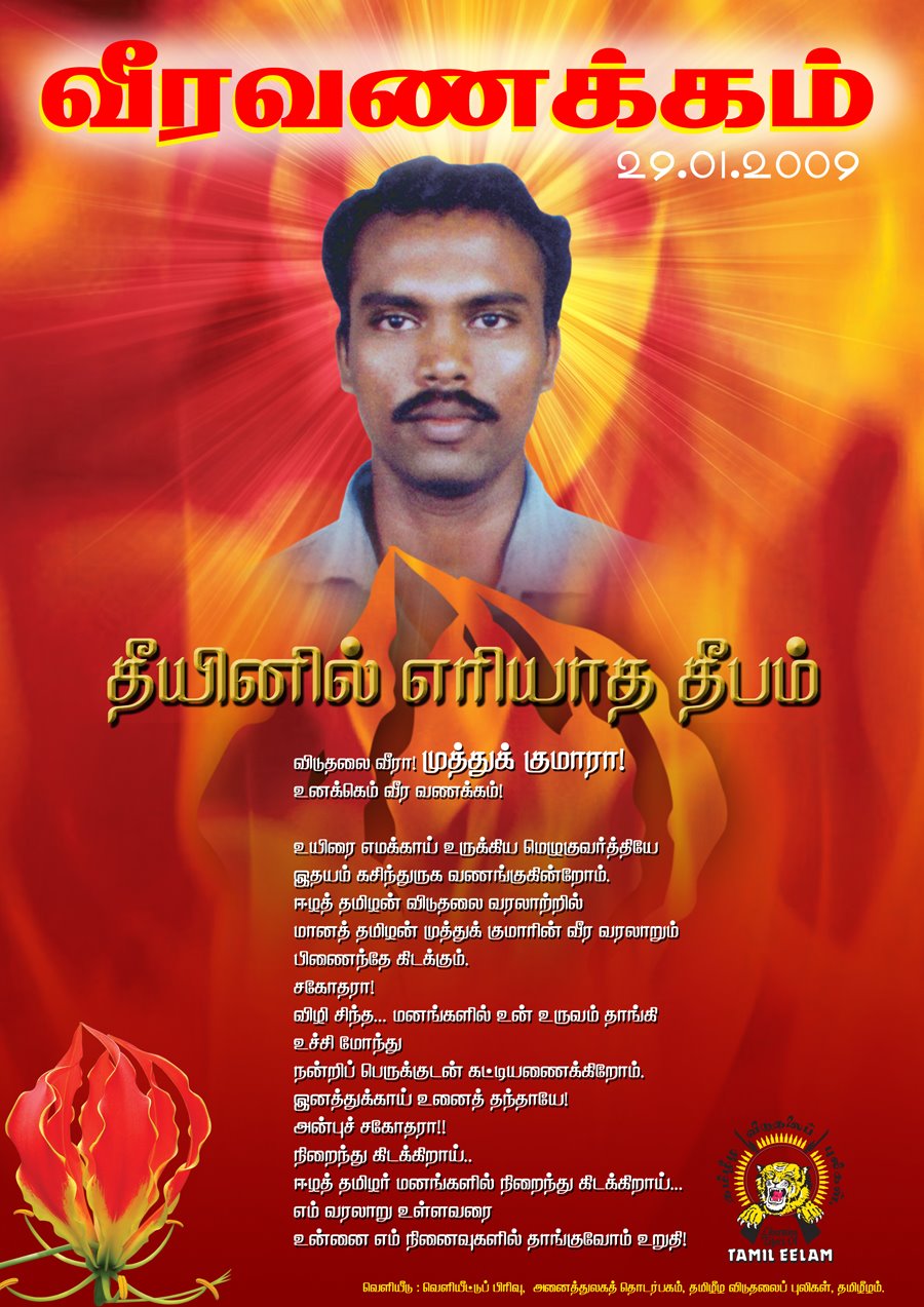 வணக்கம். வேலைக்குப் போகும் அவசரத்திலிருக்கும் உங்களை இப்படி சந்திக்க நேர்ந்ததற்கு நான் வருந்துகிறேன். ஆனால் வேறு வழியில்லை. என் பெயர் முத்துக்குமார். பத்திரிகையாளர் மற்றும் உதவி இயக்குநர். தற்சமயம் சென்னையில் உள்ள பத்திரிகை ஒன்றில் வேலை செய்து வருகிறேன். உங்களைப்போல் தான் நானும். தினமும் செய்தித்தாளையும், இணையத்தையும் பார்த்து பார்த்து, தினம் தினம் கொல்லப்பட்டு வரும் எம் சக தமிழர்களைக் கண்டு சாப்பிட முடியாமல், தூங்க முடியாமல், யோசிக்க முடியாமல் தவிக்கும் எத்தனையோ பேரில் ஒரு சாமானியன். வந்தாரை வாழ வைக்கும் செந்தமிழ் நாட்டில் சேட்டு என்றும், சேட்டனென்றும் வந்தவனெல்லாம் வாழ, சொந்த ரத்தம் ஈழத்தில் சாகிறது. அதைத் தடுத்து நிறுத்துங்கள் என்று குரல் கொடுத்தால், ஆம் என்றோ இல்லை என்றோ எந்த பதிலும் சொல்லாமல் கள்ள மௌனம் சாதிக்கிறது இந்திய ஏகாதிபத்தியம். இந்தியாவின் போர் ஞாயமானதென்றால் அதை வெளிப்படையாகச் செய்ய வேண்டியதுதானே.. ஏன் திருட்டுத்தனமாக செய்ய வேண்டும்?