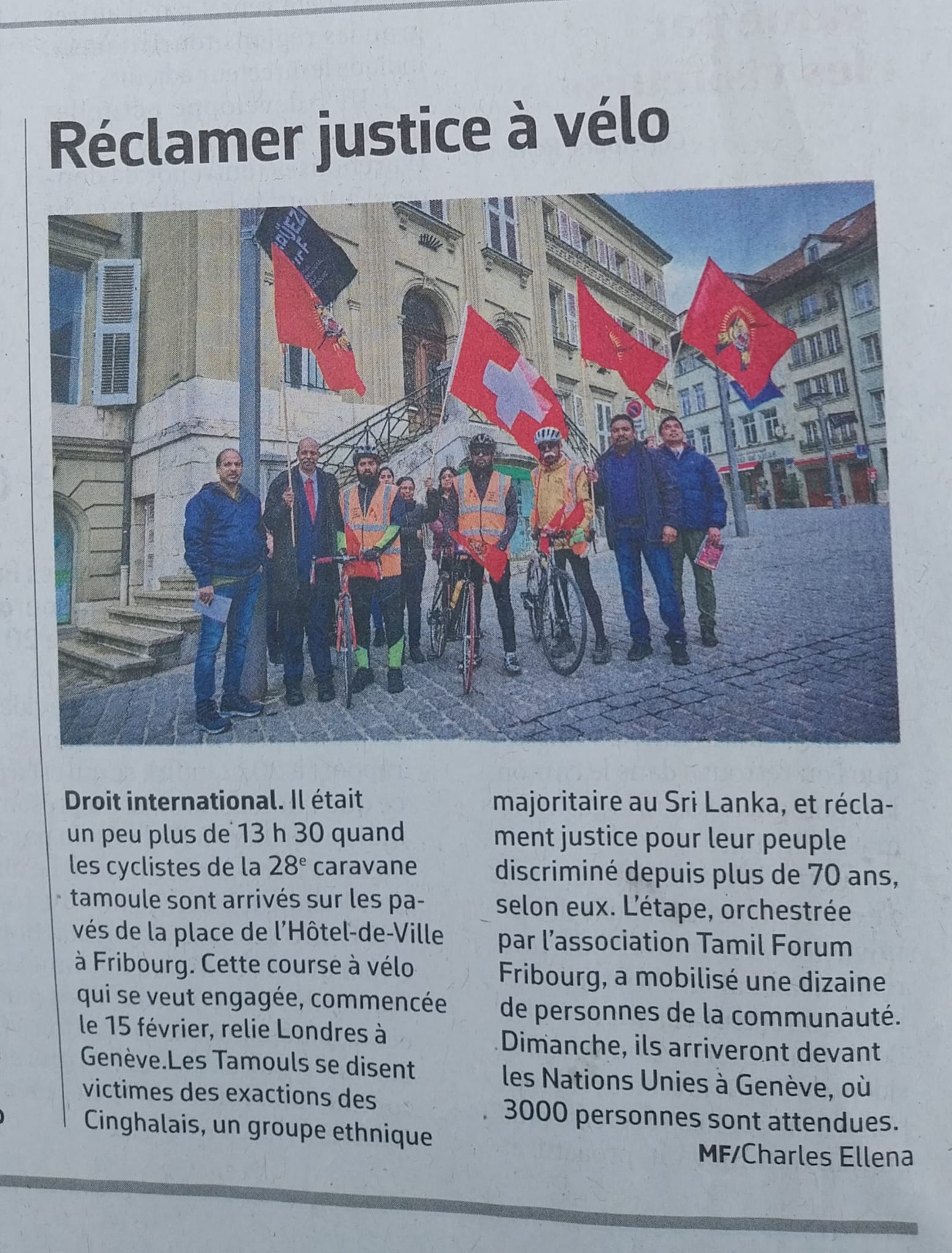 நேற்று பிறிபேர்க் பத்திரிகை சந்திப்பு 02.04.2023 இல் “LA LIBERTE” பத்திரிகையில் பிரசுரிக்கப்பட்டமை குறிப்பிடத்தக்கதாகும்.