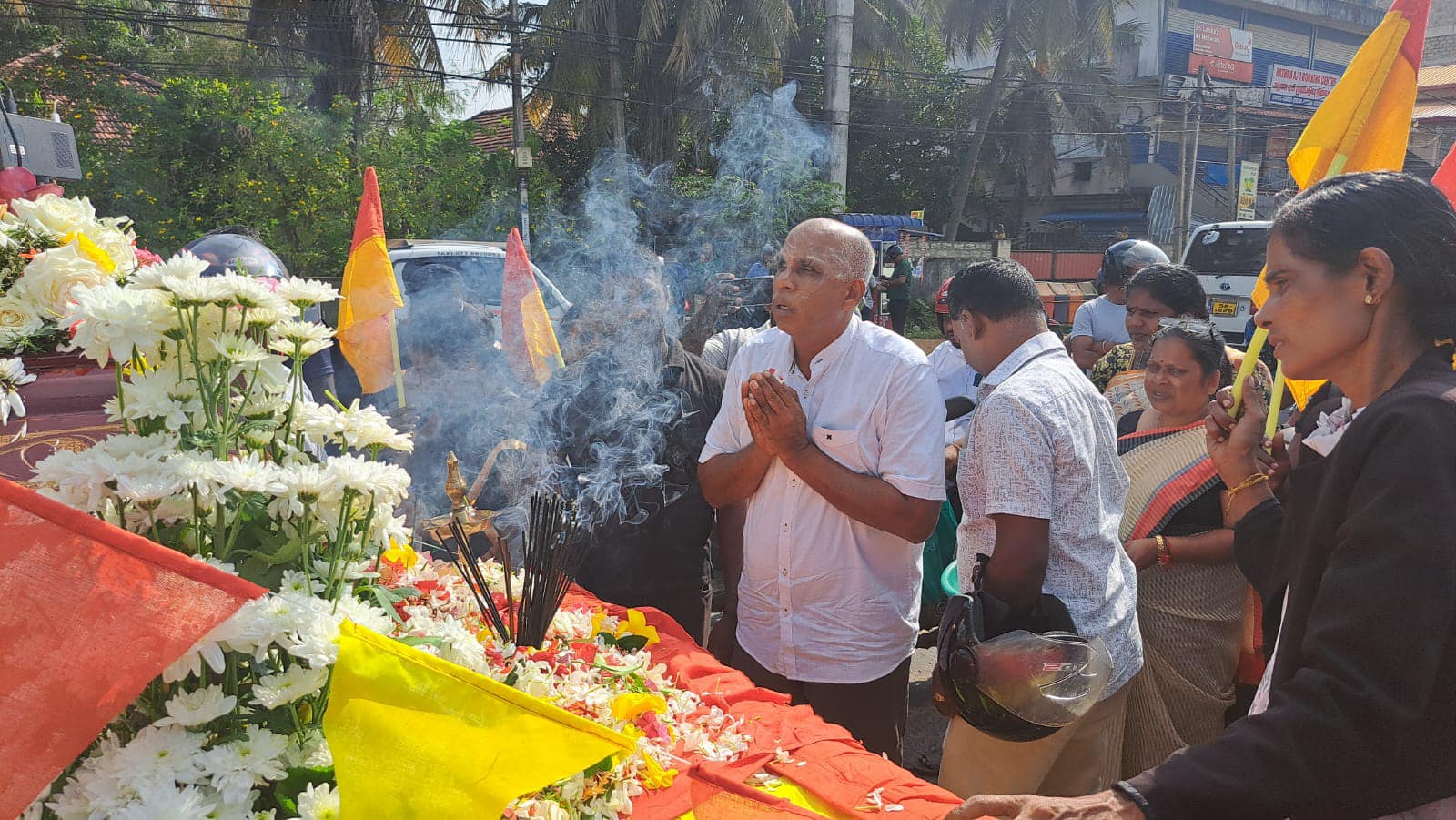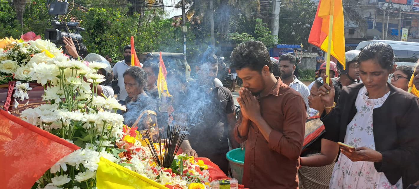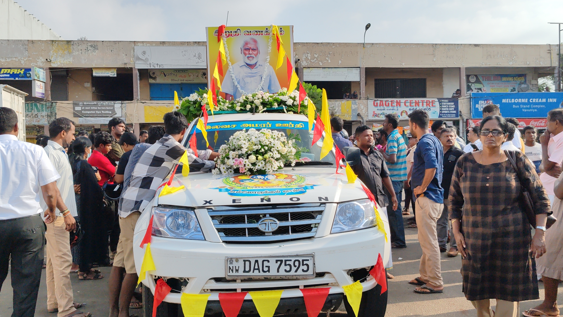 இந்திய அரசின் சதியால் மறைந்த சாந்தனின் உடல் அலங்கரிக்கப்பட்ட ஊர்தியில் வைக்கப்பட்டு, வவுனியாவில் ஊர்வலமாக கொண்டு செல்லப்பட்டபோது, பொதுமக்கள் திரண்டு கண்ணீர் மல்க இறுதி மரியாதை செலுத்தினர்.