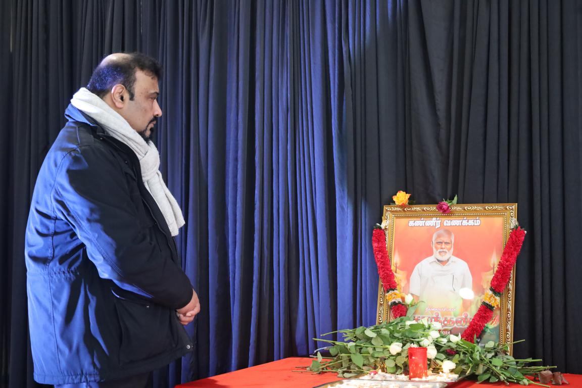 கடந்த 28/02/2024 அன்று தாய்த்தமிழகத்தில் சாவடைந்த அமரர் தில்லையம்பலம் சுரேந்திரராஜர (சாந்தன்) அவர்களுக்கான கண்ணீர் வணக்க நிகழ்வு பிரான்சு வாழ் தமிழீழ மக்களால் பாரிசின் புறநகர் பகுதியில் ஒன்றான பொபினி பிரதேசத்தில் இடம் பெற்றது. காலை 11.00மணிக்கு இவ்வணக்கநிகழ்வு நினைவுச்சுடர் ஏற்றி மலர் வணக்கம் செய்யப்பட்டு பொதுமக்களின் சுடர்,வணக்கம் மாலை 6.00மணிவரை நடைபெற்றது.