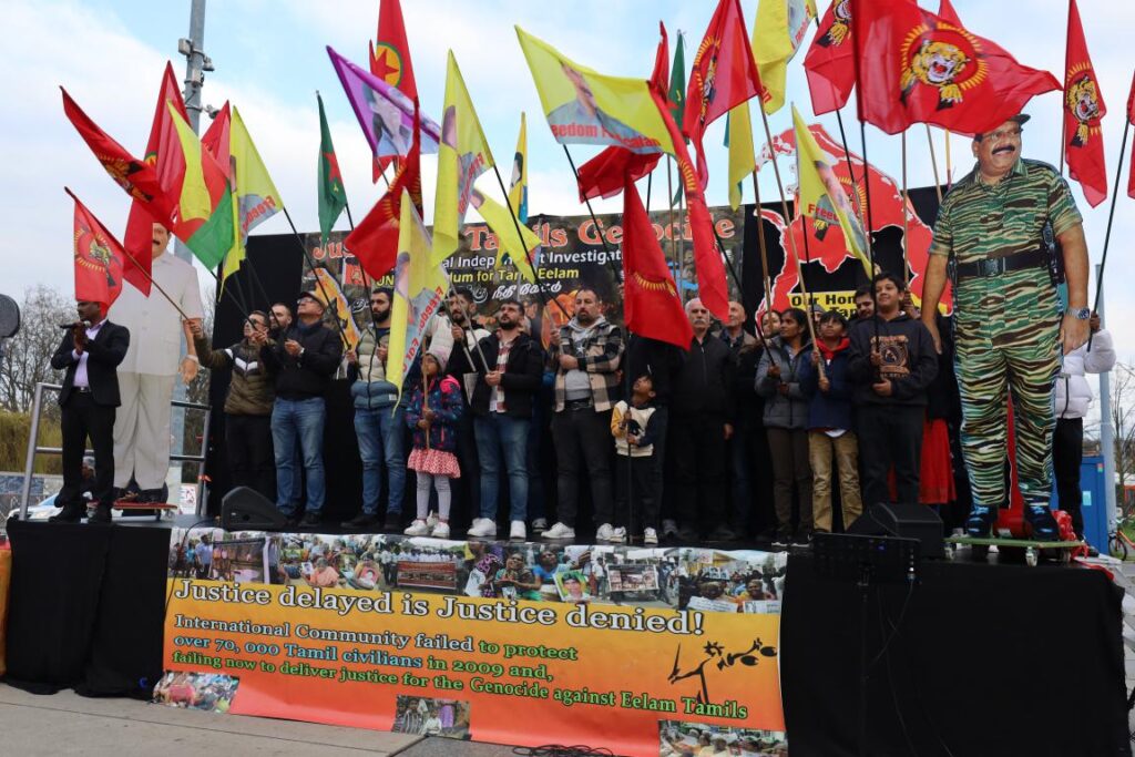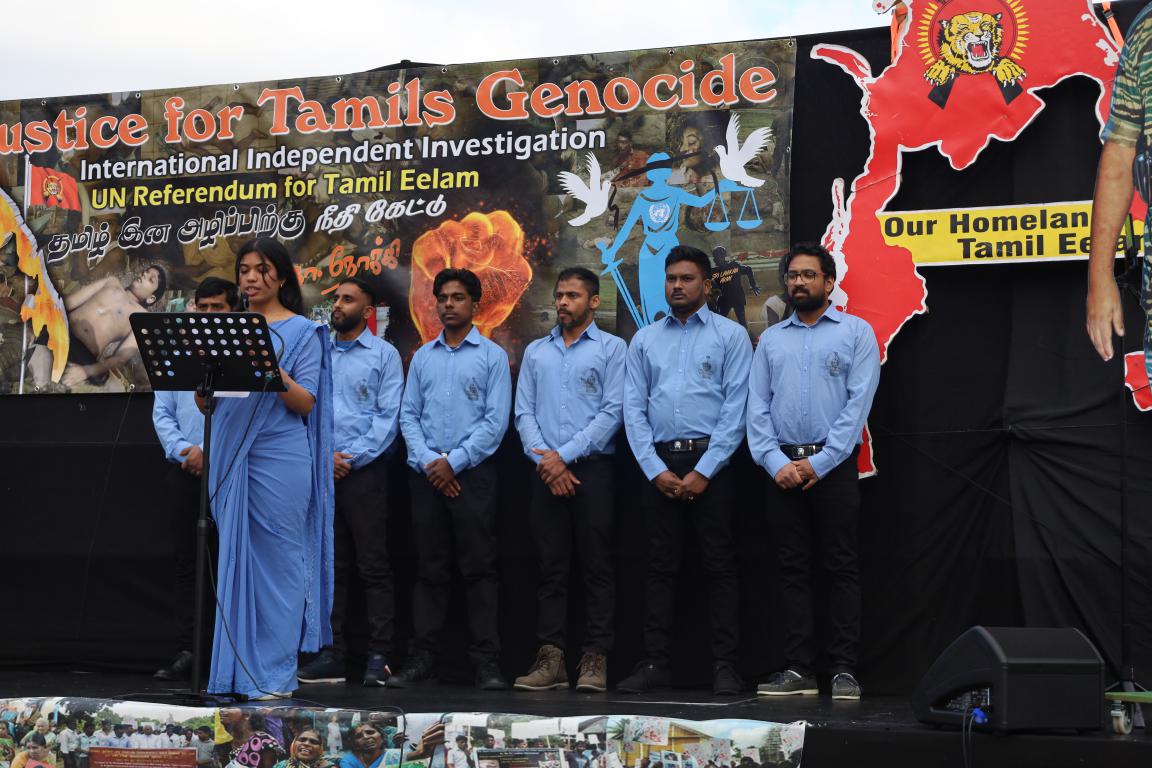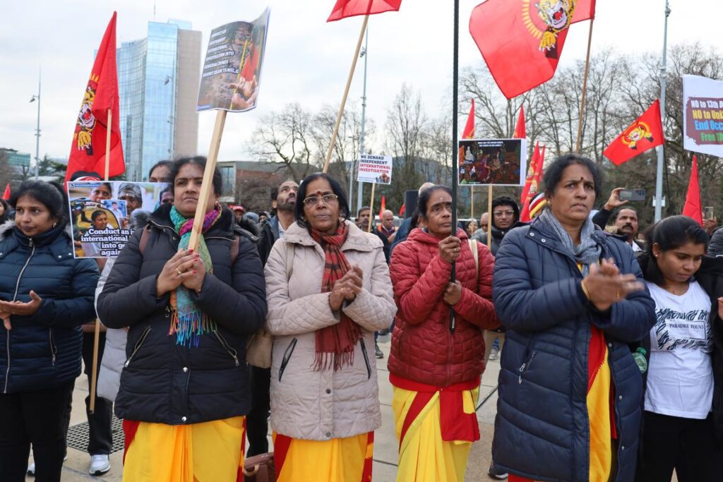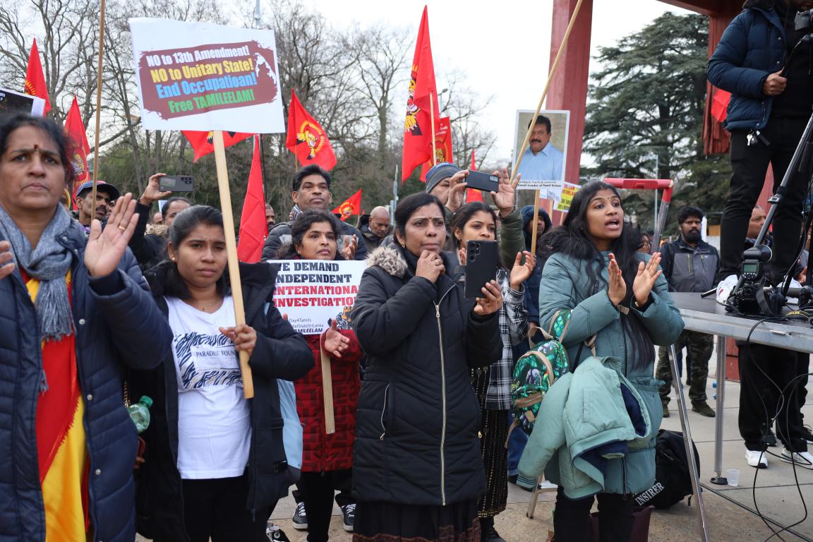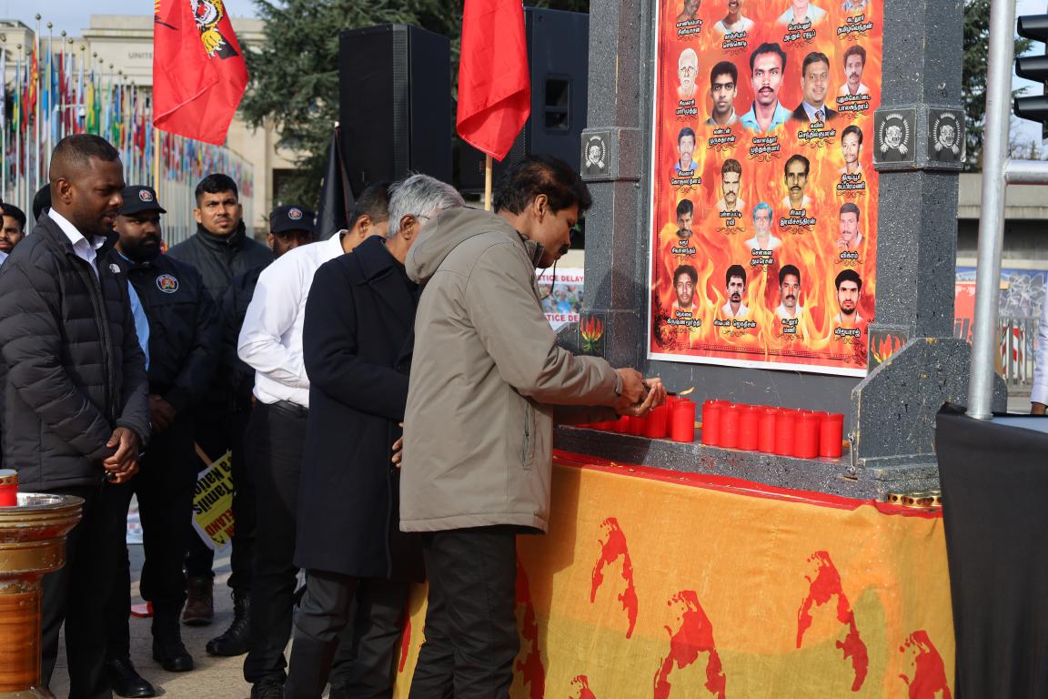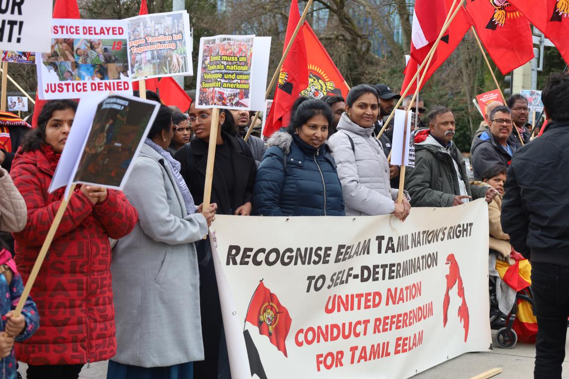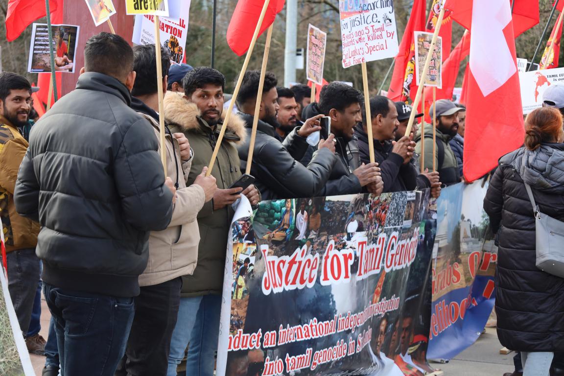ஜெனீவாவில் ஐ.நா மனித உரிமைகள் பேரவையின் 55வது கூட்டத்தொடர் நடைபெற்று வரும் நிலையில் ஈழத்தமிழர்கள் தமிழினப் படுகொலைக்குநீதிகோரி போராட்டம் ஒன்றை நடத்தினர்.