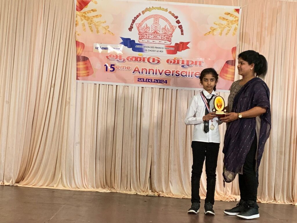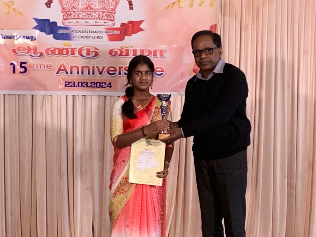 சிறப்பு போட்டிகளில் வெற்றி பெற்ற மாணவர்களுக்கும் சான்றிதழ்கள், வெற்றிக்கிண்ணம் வழங்கி மதிப்பளித்திருந்தார். அவரைத் தொடர்ந்து தமிழ்ச்சோலைத் தலைமைப்பணியக செயலாளர் திரு. காணிக்கைநாதன் அவர்களும் சுவாசிலே றுவா தமிழ்ச்சோலை மாணவர்களின் தமிழ் மொழியில் மீதான கெட்டித்தனத்தையும், தேர்வுகளில் அவர்களின் திறன்கள் பற்றியும், போட்டிகளில் பங்கு பற்றி பரிசில்கள் பெற்றிருப்பதையும் தெரிவித்திருந்தார். தமிழ்ச்சோலை நிகழ்விற்கு பி.பகல் மாநர முதல்வர் Tonino PANETTA Maire de Choisy – Le- Roi அவர்கள் முதற்தடவையாக கலந்து கொண்டிருந்ததோடு தமிழ் மக்களின் உணர்வுகளுக்கு தான் மதிப்பளிப்பதாகவும், கடந்த ஆண்டு முள்ளிவாய்க்கால் நினைவேந்தல் தனது வாசல்தலத்தில் நிகழ்ந்ததையும் தானும் கலந்து தனது உணர்வையும் வெளியிட்டதையும் நினைவுகூர்ந்தார்.