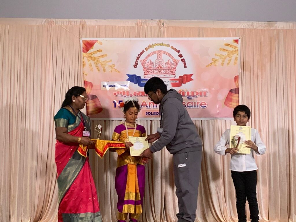 வெற்றி பெற்ற மாணவர்களுக்கு பரிசில்கள் வழங்கி வைத்தார். தமிழ்ச்சோலை ஆசிரியர்கள் மதிப்பளிக்கப்பட்டனர். வளர்நிலை அதிதிறன் பெற்ற மாணவர்கள், மற்றும் திருக்குறள் போட்டியில் வெற்றி பெற்ற மாணவர்கள் மதிப்பளிக்கப்பட்டனர் . தமிழ்ச் சோலை மாணவர்கள், ஆசிரியர்கள் ஆக்கங்கள் கொண்ட மலர் வெளியிட்டு வைக்கப்பட்டது. அனைத்து மாணவர்கள் பெற்றோர் அந்நகர மக்கள் இரவு 9.00 மணிவரை இருந்து 15 ஆண்டு தமிழ்ச்சோலை நிகழ்வை சிறப்பித்திருந்தனர் குறிப்பிடத்தக்கது.