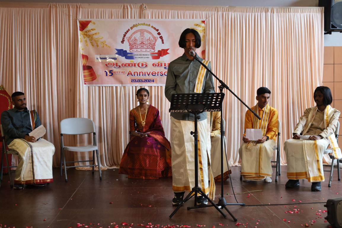 சுவாசிலே று வா பிராங்கோ தமிழ்ச் சங்கத்தின் 15 ஆவது ஆண்டு விழா தமிழ்ச்சோலை குழந்தைகளுடன் சிறப்பாக 23.03.2024 சனிக்கிழமை மதியம் 12;00 மணிக்கு ஆரம்பமாகியது. அகவணக்கம் செலுத்தப்பட்டு மங்கள விளக்கு ஏற்றப்பட்டது. அதனை சுவாசிலே றூவா மாநகர உதவி முதல்வர் டீநநெனiஉவந ர்யுஊர்நு அவர்கள் அரசியல் பிரிவு பொறுப்பாளர் ளுயடிசiயெ குழுNவுயுஐNநு அவர்களும் மற்றும் மாநகர முக்கிய பிரமுகர்கள் கலந்து கொண்டு ஏற்றினர். அவர்களுடன் தமிழர் ஒருங்கிணைப்புக்குழு பொறுப்பாளர், தமிழ்ச்சோலை தலைமைப்பணியக செயலாளர், தமிழ்ச்சங்கங்களின் கூட்டமைப்புப் பொறுப்பாளர், மற்றும் சங்கத்தலைவர், நிர்வாகி ஆகியோர் ஏற்றி வைத்தனர்.