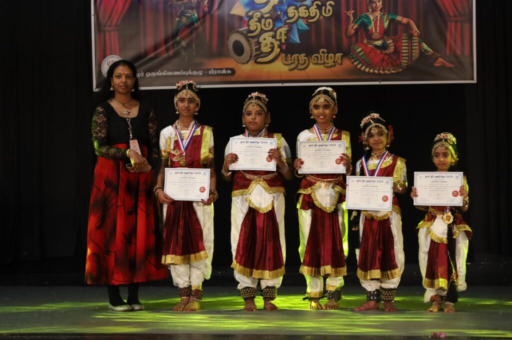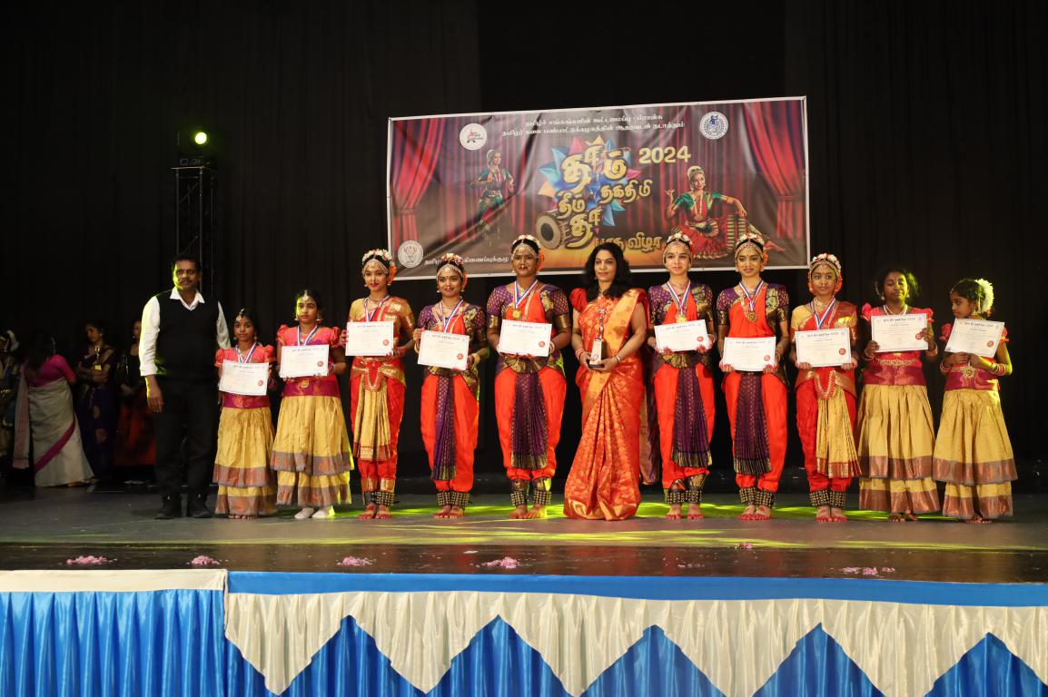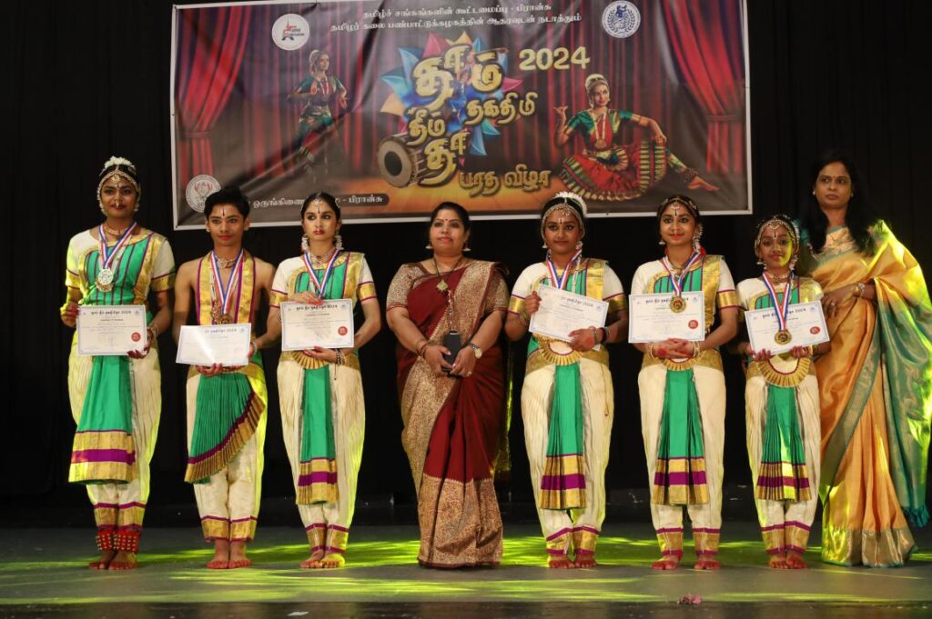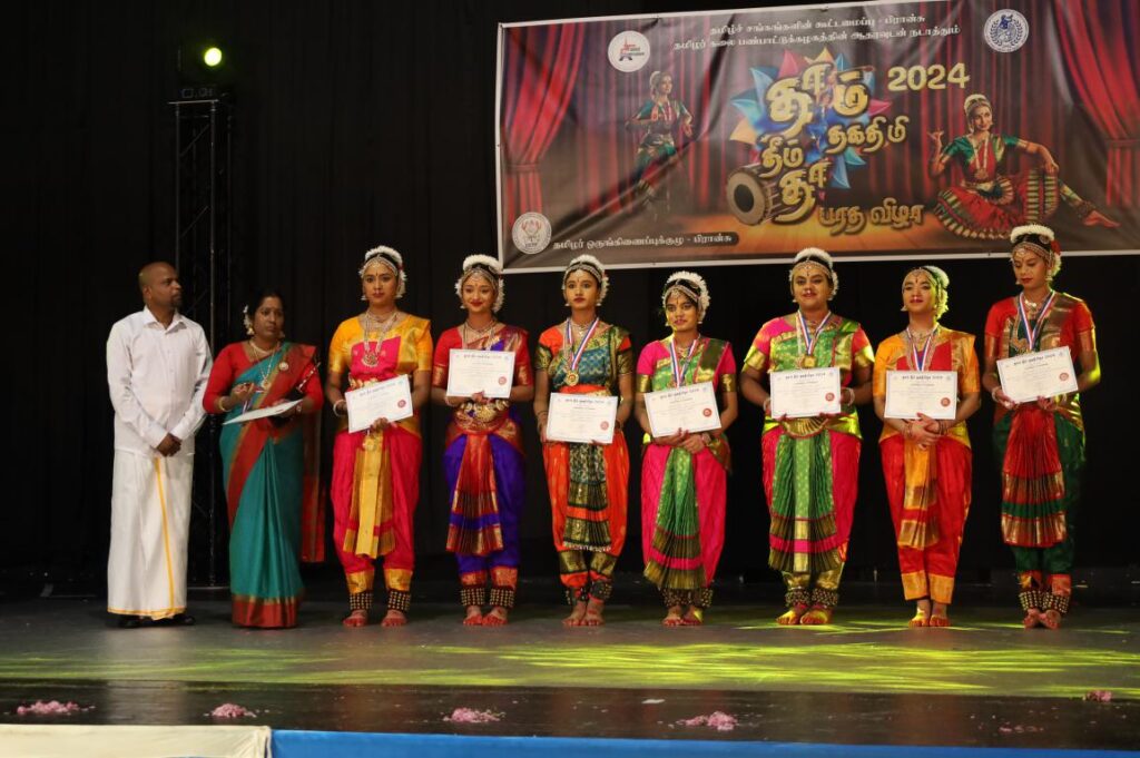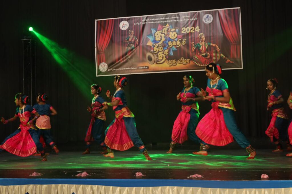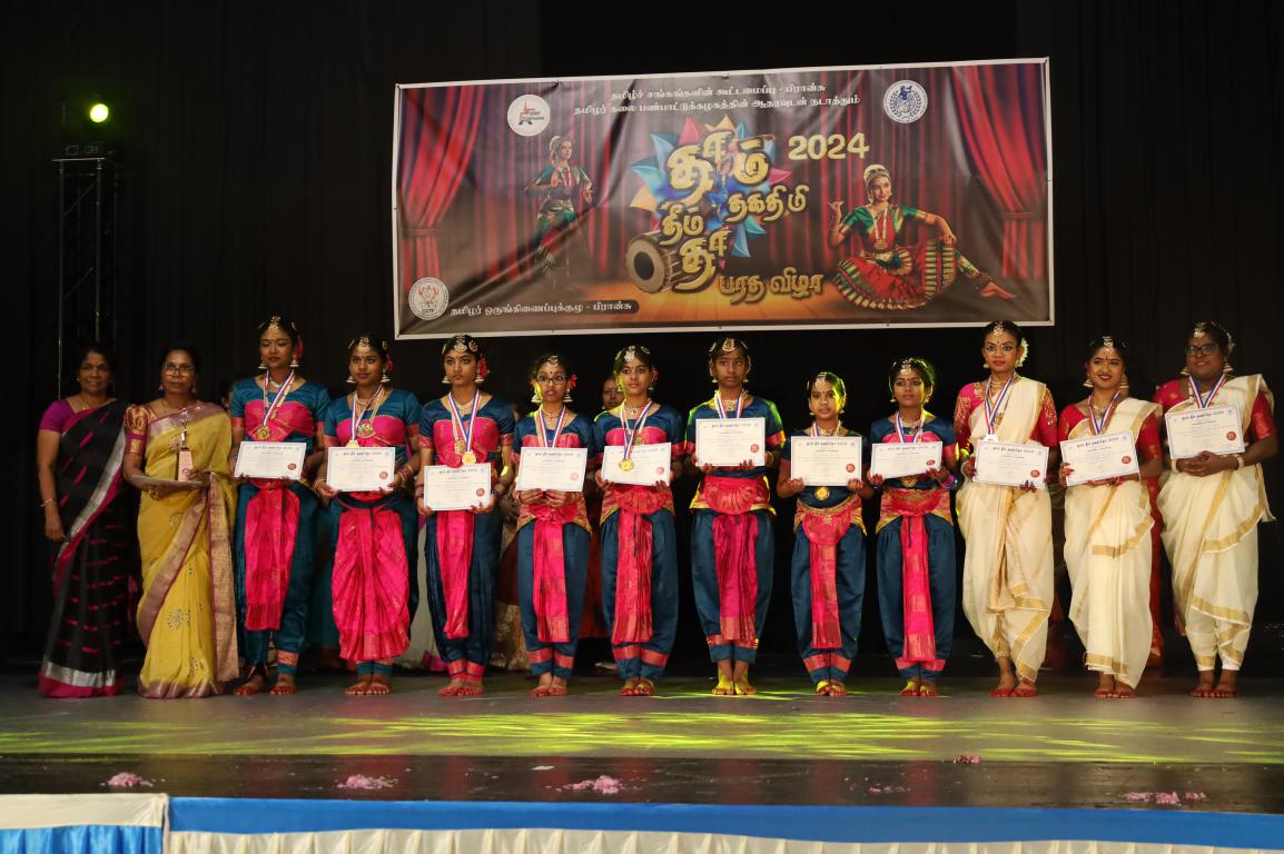 பிரான்சில் நடைபெற்ற தாம் தீம் தகதிமிதா பரதநாட்டிய நிகழ்வு. பிரான்சில் 76 பிராங்கோ தமிழ்ச்சங்களின் தலைமைக்கட்டமைப்பான தமிழ்ச்சங்கங்களின் கூட்டமைப்பு நடாத்திய தாம்தீம் தகதிமிதா 2024 நிகழ்வு 07.04.2024 ஞாயிற்றுக்கிழமை பாரிசின் புறநகர் பகுதியில் ஒன்றான ஓன்லோ சுபுவாவில் நடைபெற்றது.