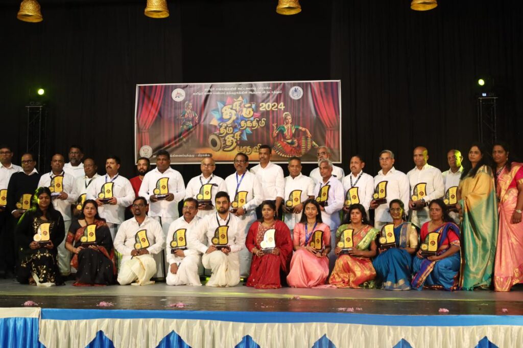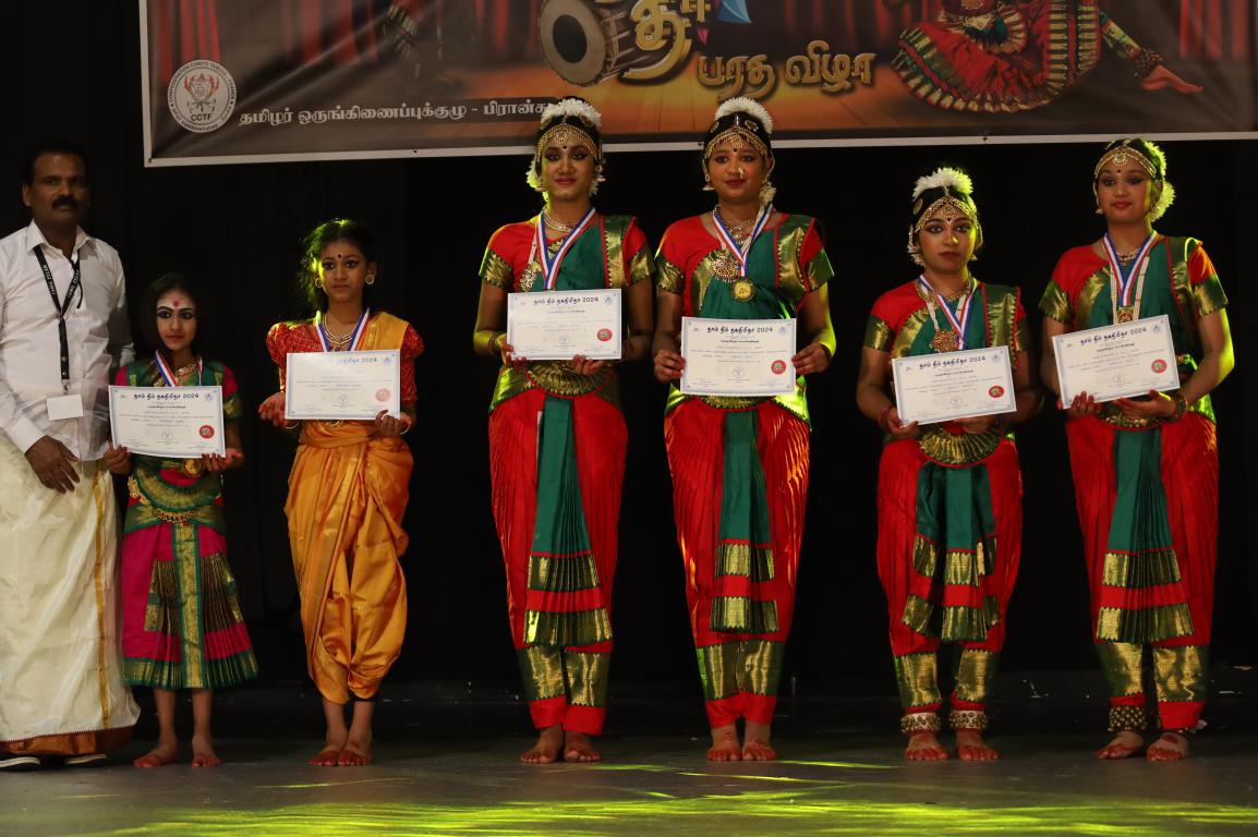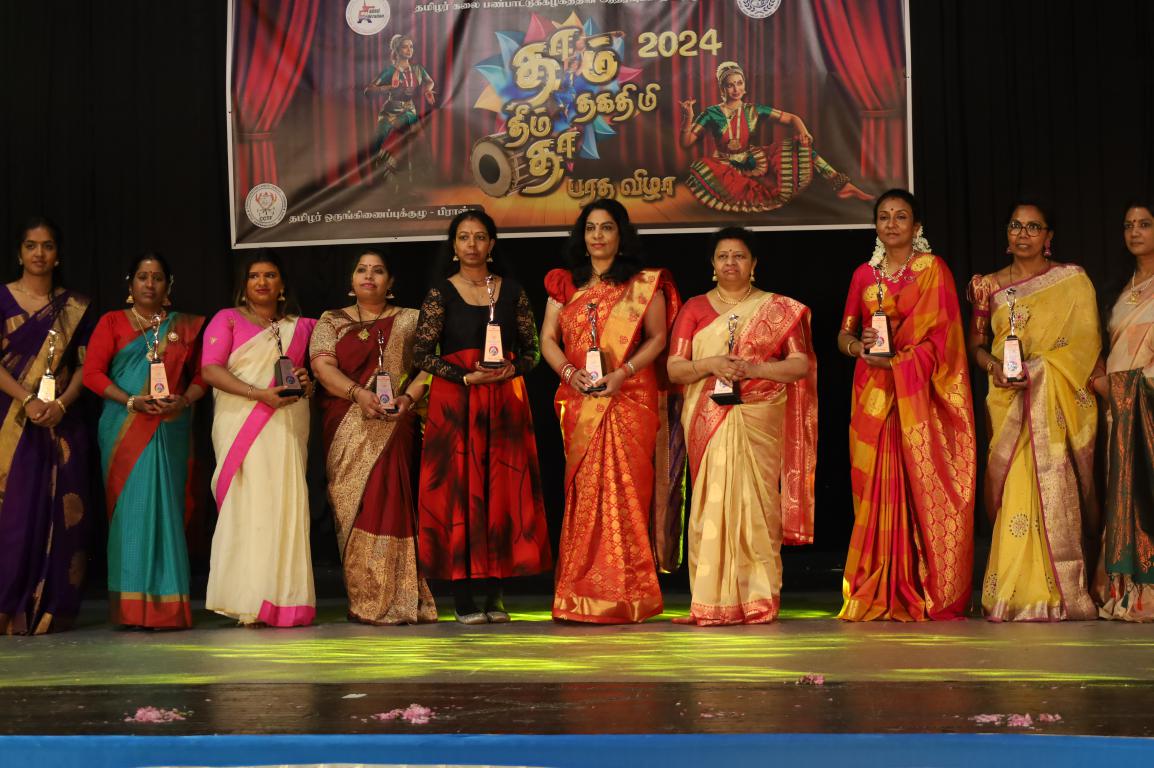 தொடர்ந்து பிராங்கோ தமிழ்ச்சங்கத்தலைவர்கள் ‘ தகைசார் தமிழர்’ என்னும் விருது வழங்கி மதிப்பளிப்பு செய்யப்பட்டனர். அந்த மதிப்பளிப்பினை தமிழர் ஒருங்கிணைப்புக்குழு பிரான்சின் பொறுப்பாளர் திரு. ம. ராசன் அவர்கள் செய்திருந்தார். இன்றைய தகதிமி தா நிகழ்வில் அழைப்பை ஏற்று நடனங்களை வழங்கிச்சிறப்பித்த நடன ஆசிரியர்களை நிகழ்வின் சிறப்பு விருந்தினர் முதுகலைமாணி, பரதகலாவித்தகர். திருமதி. ஜெயந்தி யோகலிங்கம் அவர்கள் வழங்கி மதிப்பளிப்பு செய்திருந்தார். தமிழர் ஒருங்கிணைப்புக்குழுவின் கட்டமைப்புப் பொறுப்பாளர்களும், தமிழ்ச்சங்க உறுப்பினர்களும், தமிழ்ச்சோலை தலைமைப்பணியகம், மற்றும் கல்வி மேம்பாட்டுப் பேரவை மேலாளர், மற்றும் மாநகர ஆலோசகர் ஆகியோரால் பங்குபற்றி நடனங்களை சிறப்பாக வழங்கிய நடன மாணவ மாணவிகளுக்கு சிறப்பு பதக்கங்களும், பங்கு பற்றியமைக்கான சான்றிதழ்களும் வழங்கி மதிப்பளிக்கப்பட்டது. இறுதி நிகழ்வாக நல்வாய்ப்பு சீட்டு குலுக்கப்பட்டு பரிசுப் பொருட்கள் வழங்கப்பட்டது.