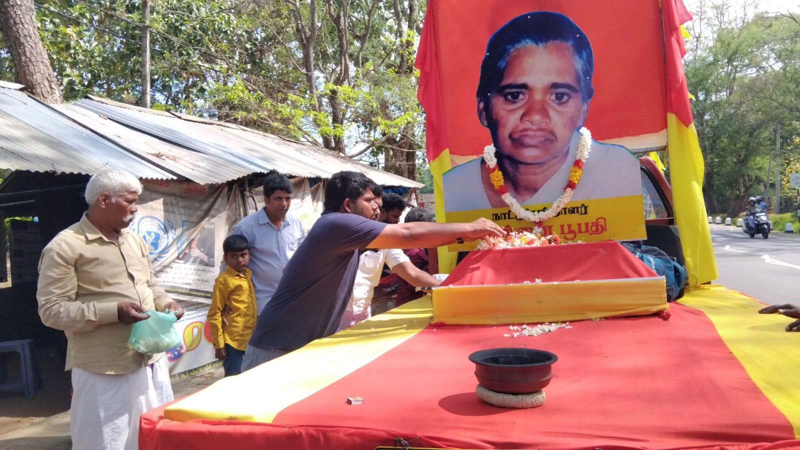 தியாகி அன்னை பூபதியின் 36 ஆவது நினைவு தினத்தை முன்னிட்டு இடம்பெறும் ஊர்திப் பவனியானது 13.04.2024 அன்று வட தமிழீழம் யாழ்ப்பாணம் நல்லூரில் அமைந்துள்ள தியாகதீபம் திலீபன் அவர்களின் நினைவுத் தூபி முன் மாலை 4.00 மணிக்கு தமிழ்த் தேசிய மக்கள் முன்னணியின் யாழ் மாவட்ட அமைப்பாளர் பொன் மாஸ்ரர் தலைமையில் ஆரம்பமாகி முன்னணியின் பொதுச்செயலாளரும் பாராளுமன்ற உறுப்பினருமான செல்வராஜா.கஜேந்திரன் அவர்களன் நினைவுரையுடன் பயணமான ஊர்தி யாழ் நகரை அண்டிய கொக்குவில் அரசடி நாவாந்துறை அரியாலை நல்லூர் திருநெல்வேலி வண்ணார்பண்ணை இனுவில் ஆகிய பகுதிகளூடாக மக்களின் வணக்கத்துக்காக சென்று முதல் நாள் ஊர்திப்பவனியை நிறைவு செய்தது இதில் பெரும் திரளான மக்கள் வீதீகள் தோறும் நின்று நினைவு வணக்கம் செலுத்தி தங்கள் உணர்வுகளை வெளிப்படுத்தினர்.