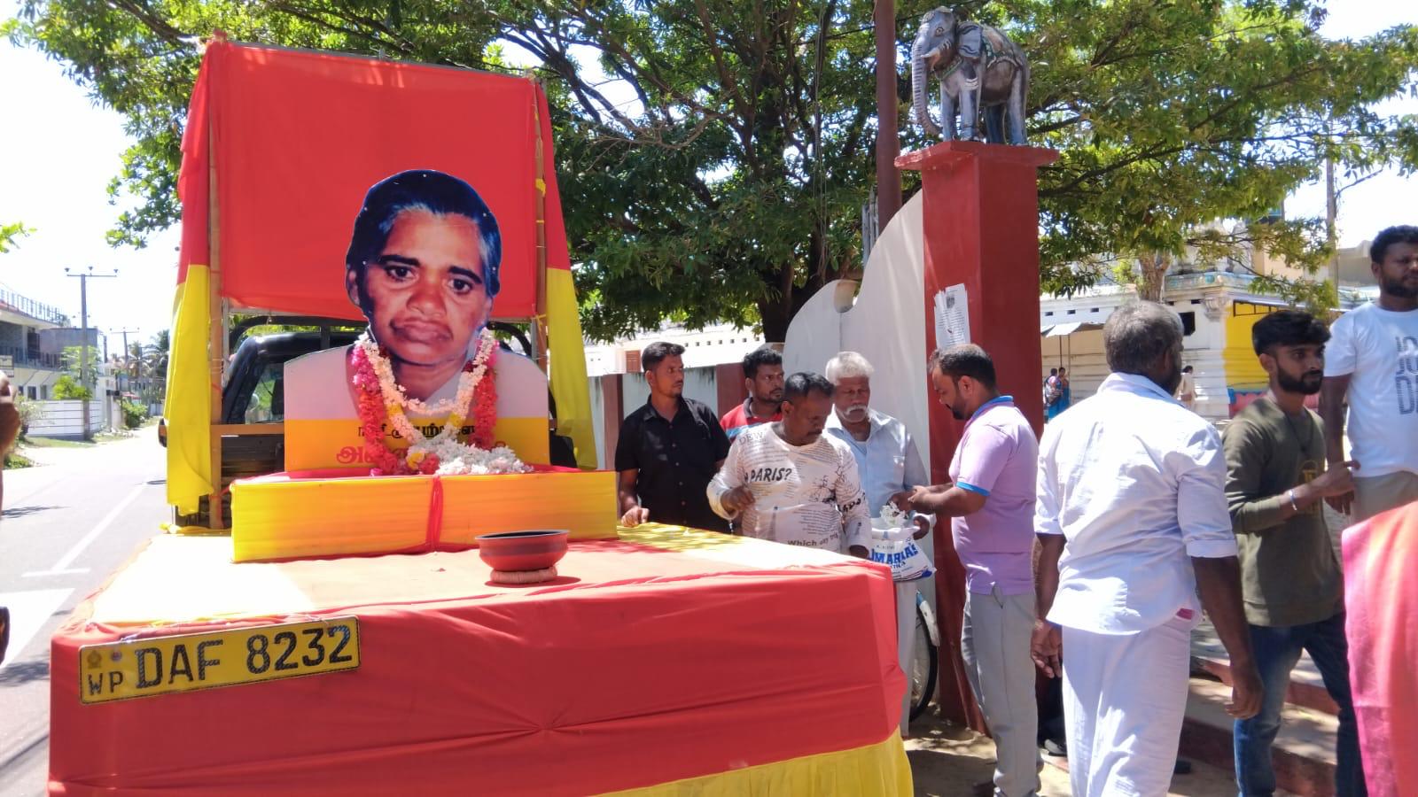 தியாகச் சுடர் அன்னை பூபதி அவர்களுடய 36 ம் ஆண்டின் 06ம் நாள் 18.04.2024 இன்று அன்னை பூபதி அவர்களின் திருவுருவப்படம் தாங்கிய ஊர்திப்பவனியானது மட்டக்களப்பு மாவட்டத்தில் மக்கள் வணக்கத்திற்காகப் பயணித்திற்கொண்டிருக்கிறது இதில் பெரும் திரளான மக்கள் வீதிகள் தோறும் நின்று நினைவு வணக்கம் செலுத்தி தங்கள் உணர்வுகளை வெளிப்படுத்தி வருகின்றனர்.