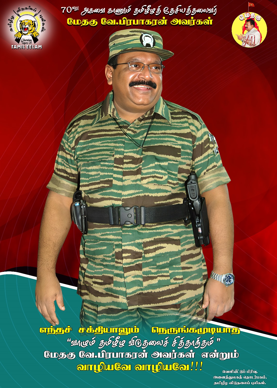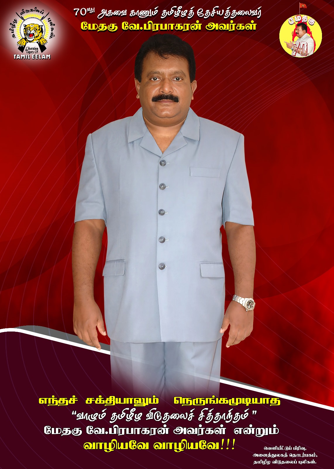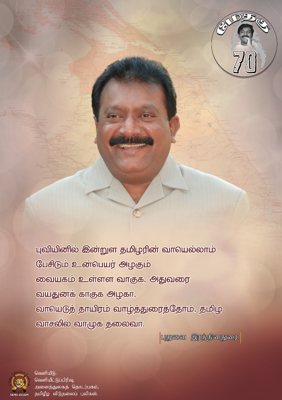 தமிழீழ தேசியத் தலைவரின் சிந்தனையை அழித்து தமிழரின் உரிமைப் போரை நீர்த்துப் போகச் செய்ய எதிரி பல்வேறு வழிகளிலும் முனைப்புக்காட்டி வரும் நிலையில் தமிழீழ தேசியத்தலைவர் அவர்களின் அழகிய வண்ணப் படங்களை தமிழீழ விடுதலைப் புலிகளின் அனைத்துலகத் தொடர்பகம் வெளியீட்டுப் பிரிவு அனைவருடனும் பகிர்ந்து வருகின்றது.
