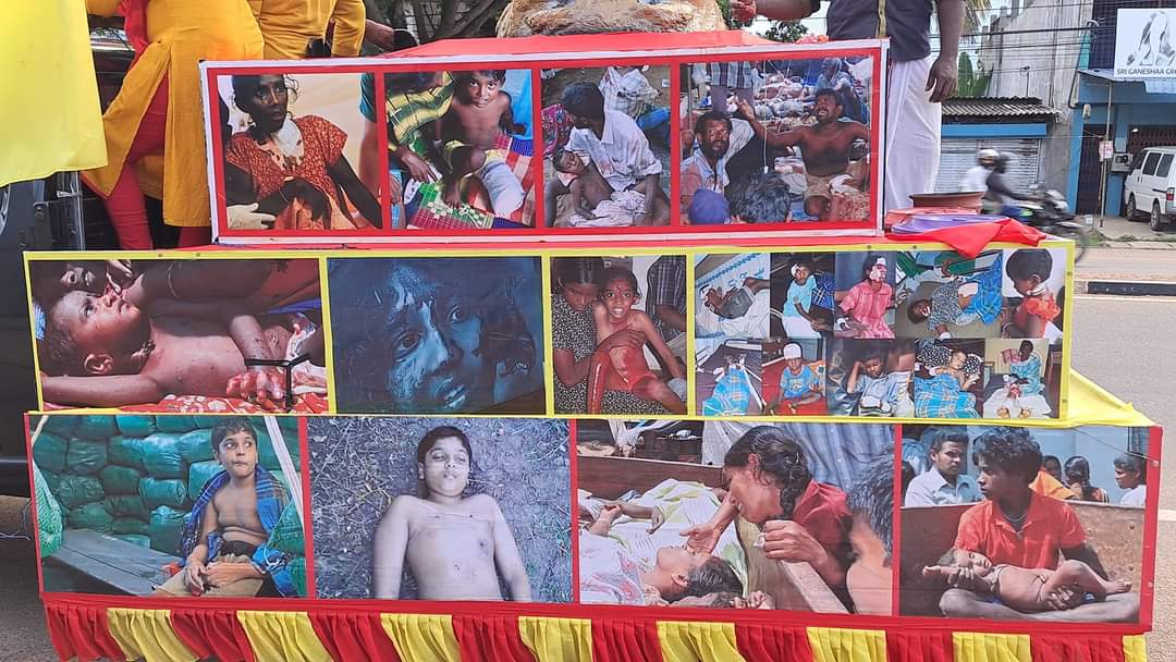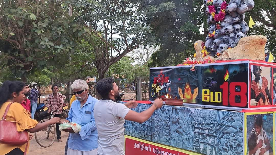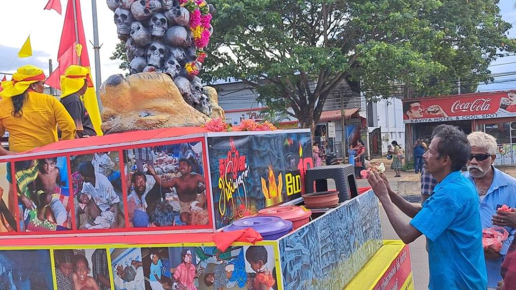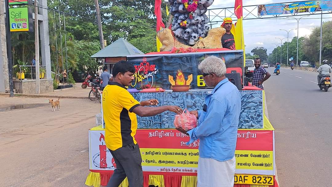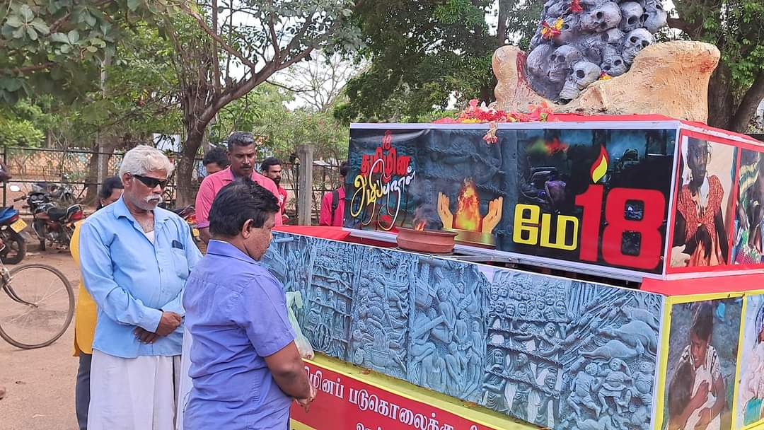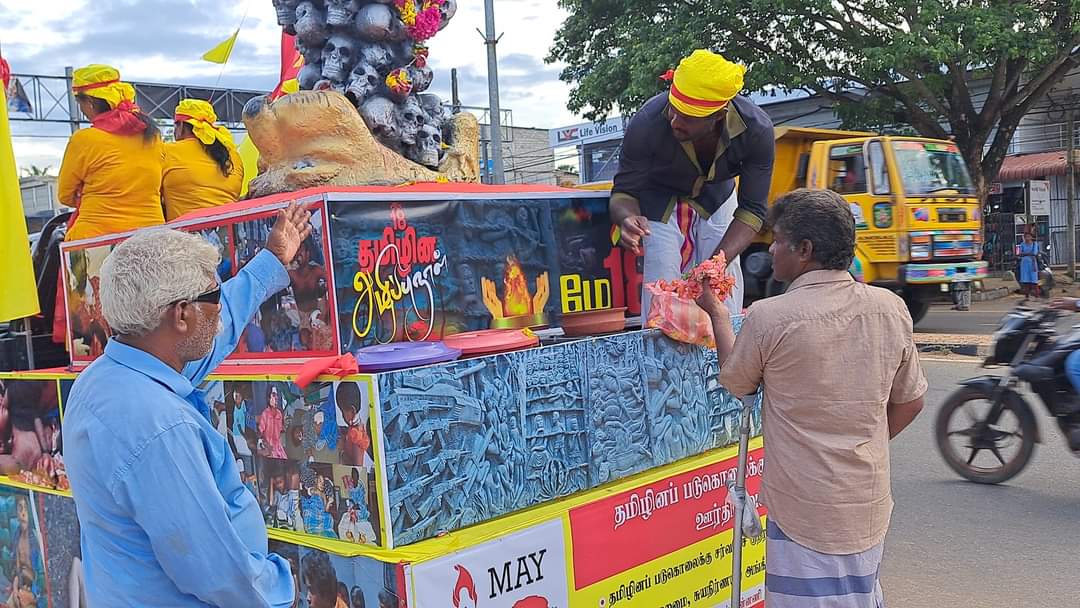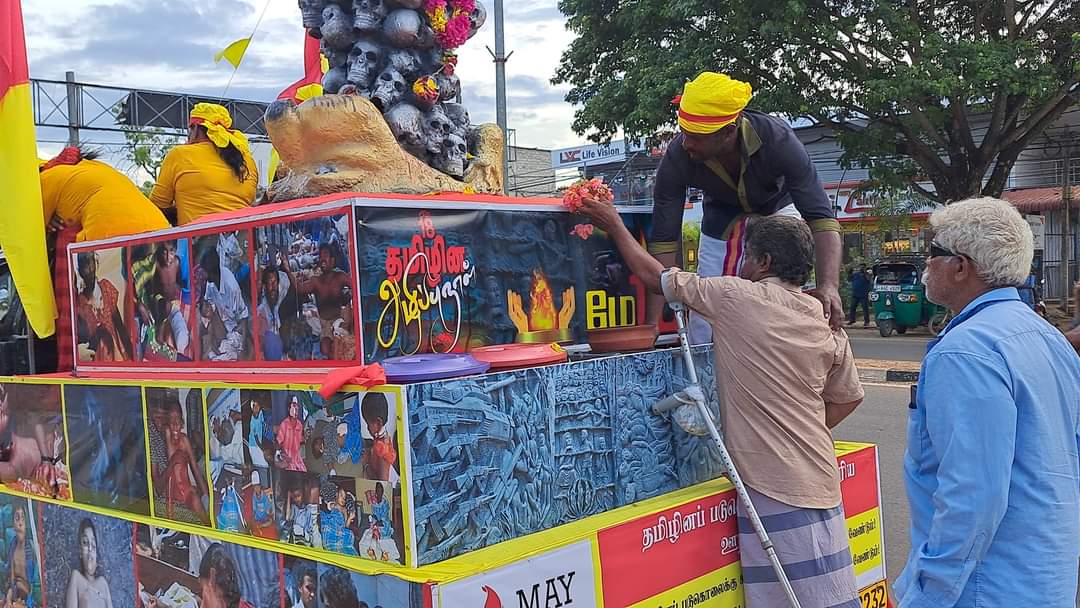 ஈழச்செய்திகள்சிறப்பு செய்திகள் முள்ளிவாய்க்கால் நினைவூர்திக்கு கிளிநொச்சியில் மக்கள் அஞ்சலி! By வானகன் - May 16, 2024 0 198 தமிழ்த்தேசிய மக்கள் முன்னணியின் ஏற்பாட்டில் தமிழர் தாயகப் பகுதிகளில் பயணித்து வரும் முள்ளிவாய்க்கால் நினைவு ஊர்தி நேற்று 15.05.2024 கிளிநொச்சி நகரில் அஞ்சலிக்காக வலம்வந்தபோது பல பொதுமக்கள் அணிவகுத்து மலர்தூவி அஞ்சலி செலுத்தினர்.