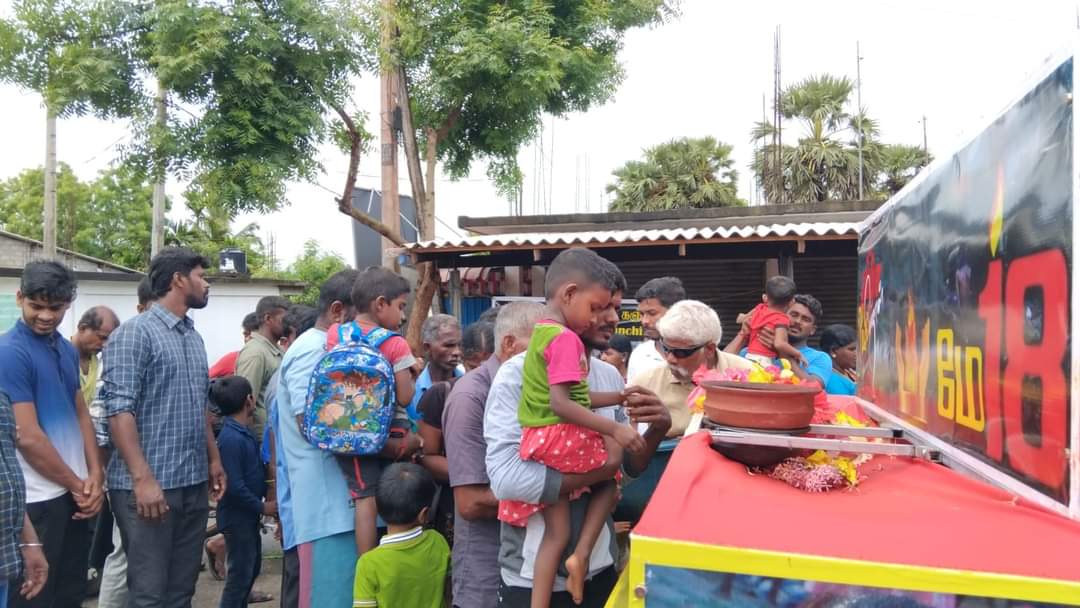 ஈழச்செய்திகள்சிறப்பு செய்திகள் மாங்குளம் மற்றும் மல்லாவி நகரங்களில் நினைவூர்திக்கு மக்கள் திரண்டு அஞ்சலி! By வானகன் - May 16, 2024 0 193 மே 18 முள்ளிவாய்க்கால் தமிழின அழிப்பு நினைவேந்தல் ஊர்தி இன்று மாங்குளம் மற்றும் மல்லாவி நகரங்களில் சென்றபோது மக்கள் கண்ணீர் காணிக்கையோடு அலையெனத்திரண்டு தமது உறவுகளை நினைவேந்தல் செய்தனர்.