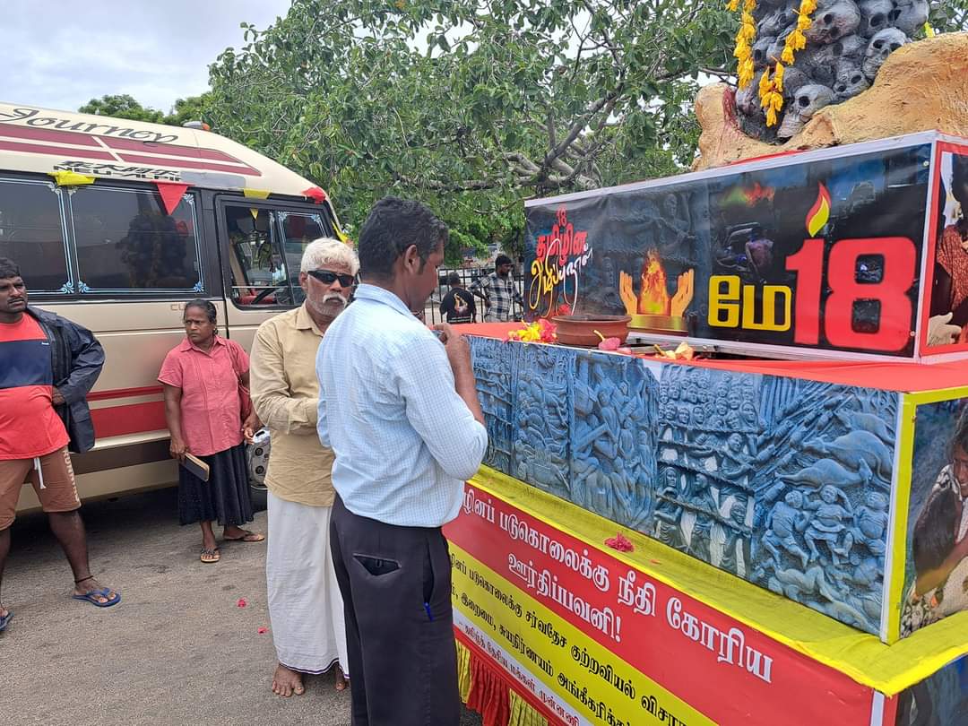 தமிழ்த்தேசிய மக்கள் முன்னணியின் ஏற்பாட்டில் தமிழர் தாயகப் பகுதிகளில் பயணித்து வரும் முள்ளிவாய்க்கால் நினைவு ஊர்தி இன்று (16.05.2024 ) வியாழக்கிழமை மன்னார் நகரில் அஞ்சலிக்காக வலம்வந்தபோது பல பொதுமக்கள் திரண்டு மலர்தூவி அஞ்சலி செலுத்தினர்.