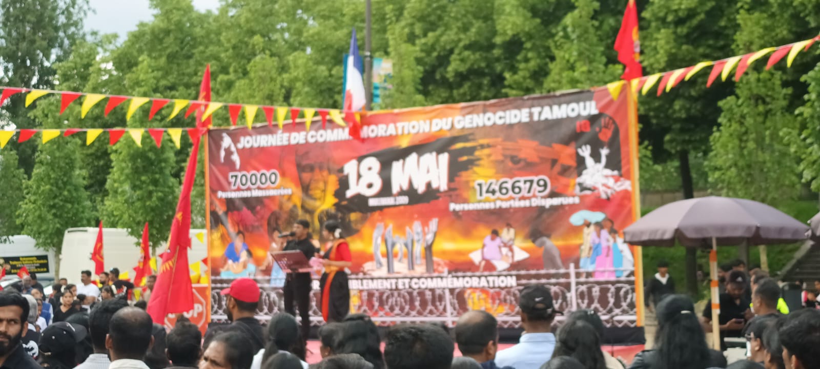 பிரான்சு பாரிஸ் பகுதியில் மே 18 முள்ளிவாய்க்கால் தமிழின அழிப்பின் 15ஆம் ஆண்டு நினைவேந்தலும் கவனயீர்ப்புப் பேரணியும் பிரான்சு தமிழர் ஒருங்கிணைப்புக்குழு, பிரான்சு தமிழீழ மக்கள் பேரவை, தமிழ்ச்சங்கங்களின் கூட்டமைப்பு மற்றும் அனைத்து உபகட்டமைப்புக்களின் ஏற்பாட்டில் இன்று (18.05.2024) சனிக்கிழமை பேரெழுச்சி கொண்டது.