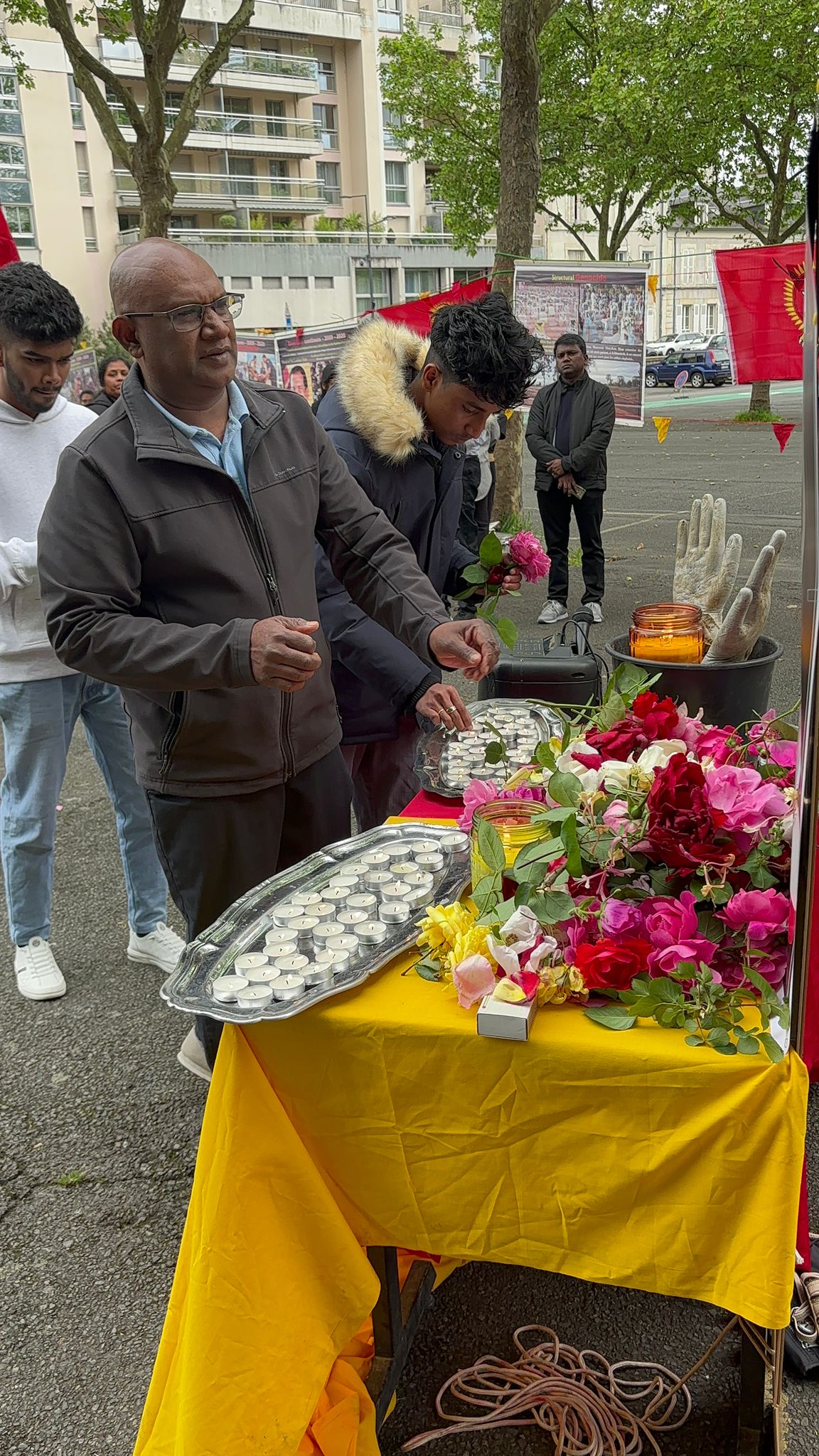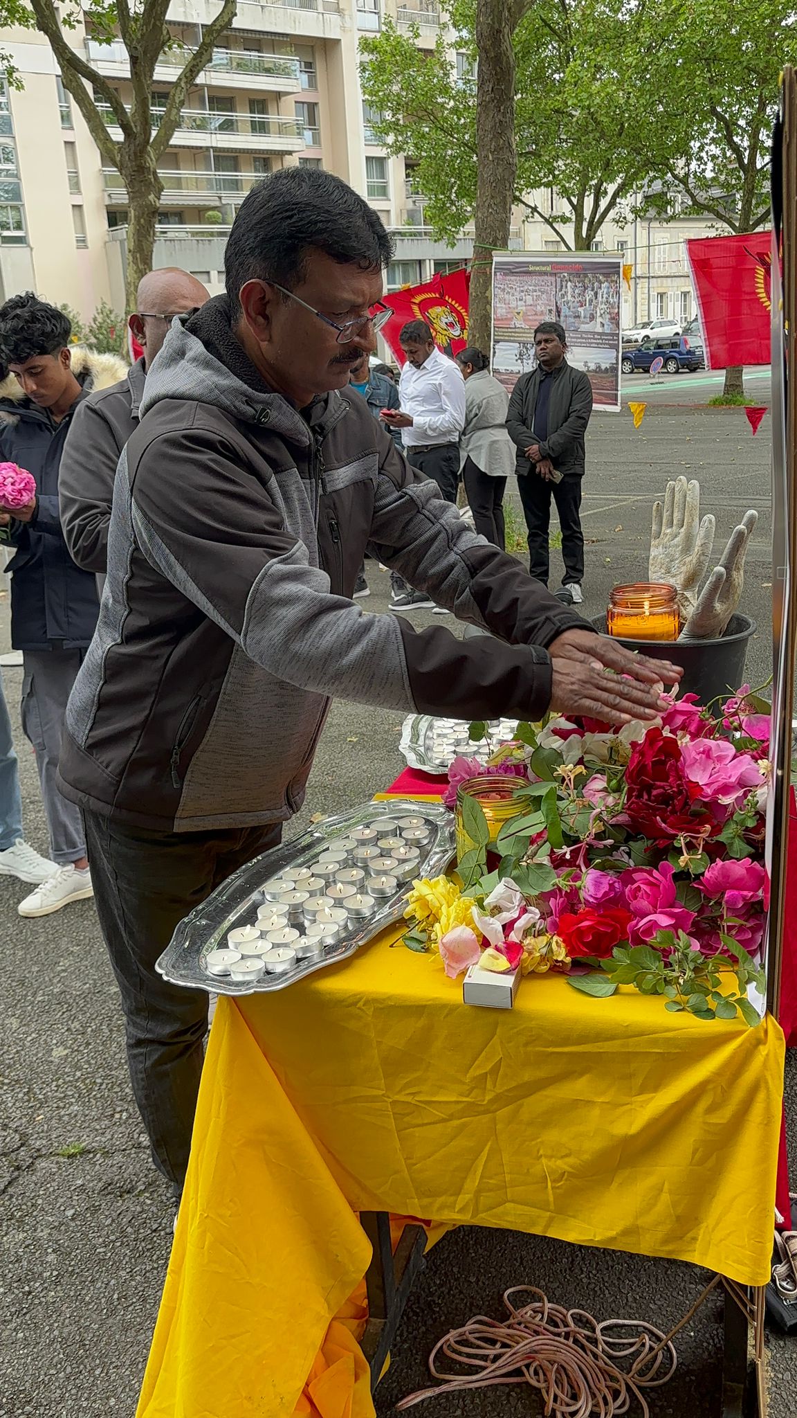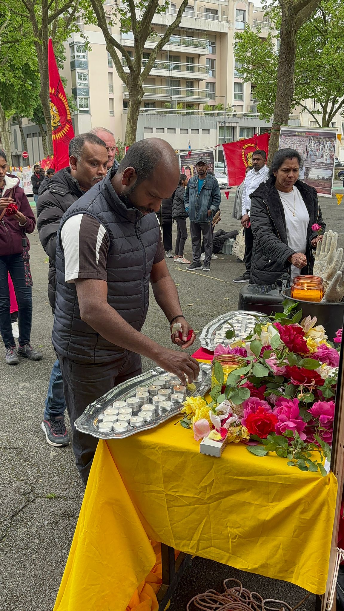 பொதுச் சுடர் ஏற்றப்பட்டதைத் தொடர்ந்து, முள்ளிவாய்க்கால் நினைவுத் திருவுருவப் படத்திற்கு திரு. கணேஷ் பகிரதன் அவர்கள் நினைவுச்சுடரினை ஏற்றி வைத்தார். அதனை தொடர்ந்து முள்ளிவாய்க்கால் நினைவுப் படத்திற்கு அருட்தந்தை அமல் அவர்கள் மலர் வணக்கம் செலுத்தினார். தொடர்ந்து பள்ளி மாணவர்களால் தமிழ் மொழியிலும் பிரெஞ்சு மொழியிலும் அகவணக்கம் நிகழ்த்தப்பட்டது. பின்பு மக்கள் இனப்படுகொலை நினைவுப் படத்திற்கு மலர் வணக்கம், சுடர் வணக்கம் செலுத்தினர். தொடர்ந்து நிகழ்வுகள் இடம்பெற்றன.