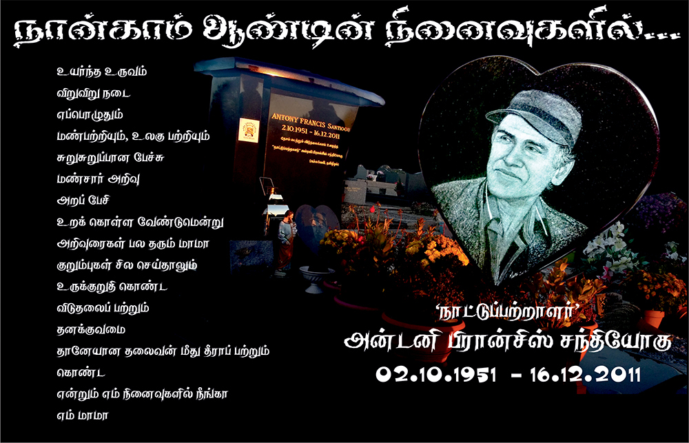 சிறப்பு செய்திகள்புலத்துச்செய்திகள் நாட்டுப்பற்றாளர் அன்டனி பிரான்சிஸ் சந்தியோகு அவர்களின் நான்காம் ஆண்டு நினைவு! By Admin - December 16, 2015 0 874 நாட்டுப்பற்றாளர் அன்டனி பிரான்சிஸ் சந்தியோகு அவர்களின் நான்காம் ஆண்டு நினைவு! image description