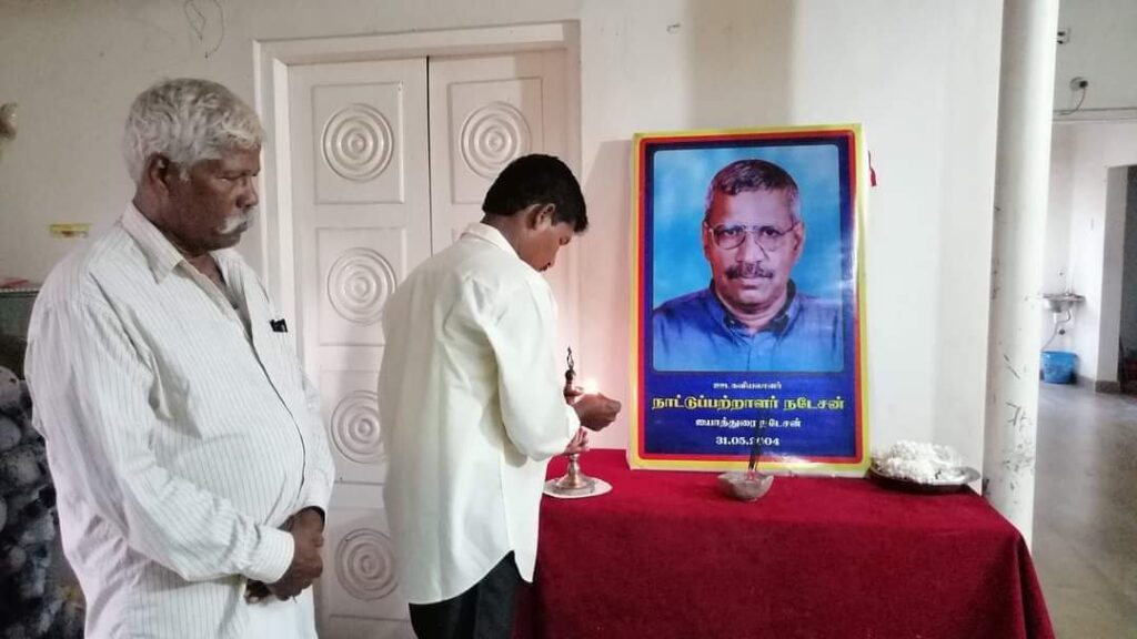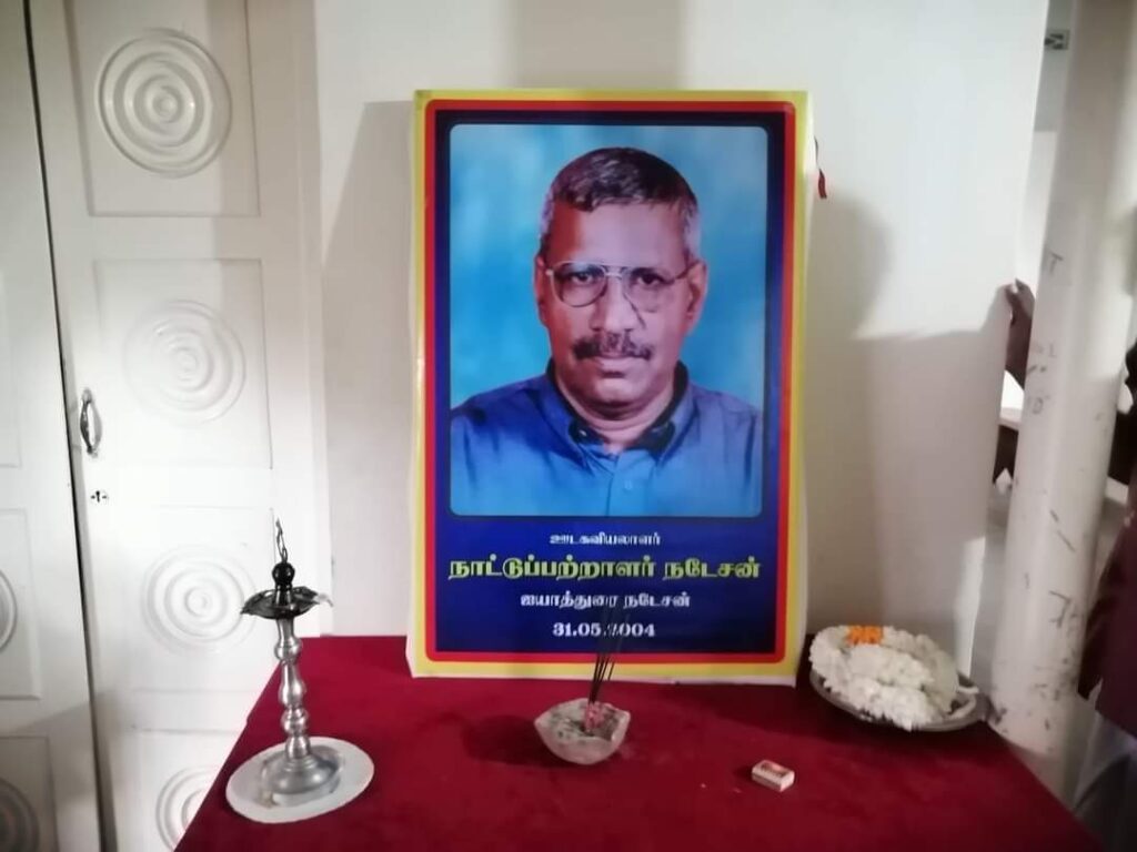 ஈழச்செய்திகள்சிறப்பு செய்திகள் ஊடகவியலாளர் நாட்டுப்பற்றாளர் நடேசன் அவர்களின் 20ஆம் ஆண்டு நினைவேந்தல்! By Admin - May 31, 2024 0 241 படுகொலைசெய்யப்பட்ட ஊடகவியலாளர் நாட்டுப்பற்றாளர் ஐயாத்துரை நடேசன் அவர்களின் 20ஆம் ஆண்டு நினைவேந்தல் இன்று 31.05.2024 .மாலை 5மணிக்கு தமிழ்த்தேசிய மக்கள் முன்னணியின் யாழ். தலைமையகத்தில் இடம்பெற்றது.