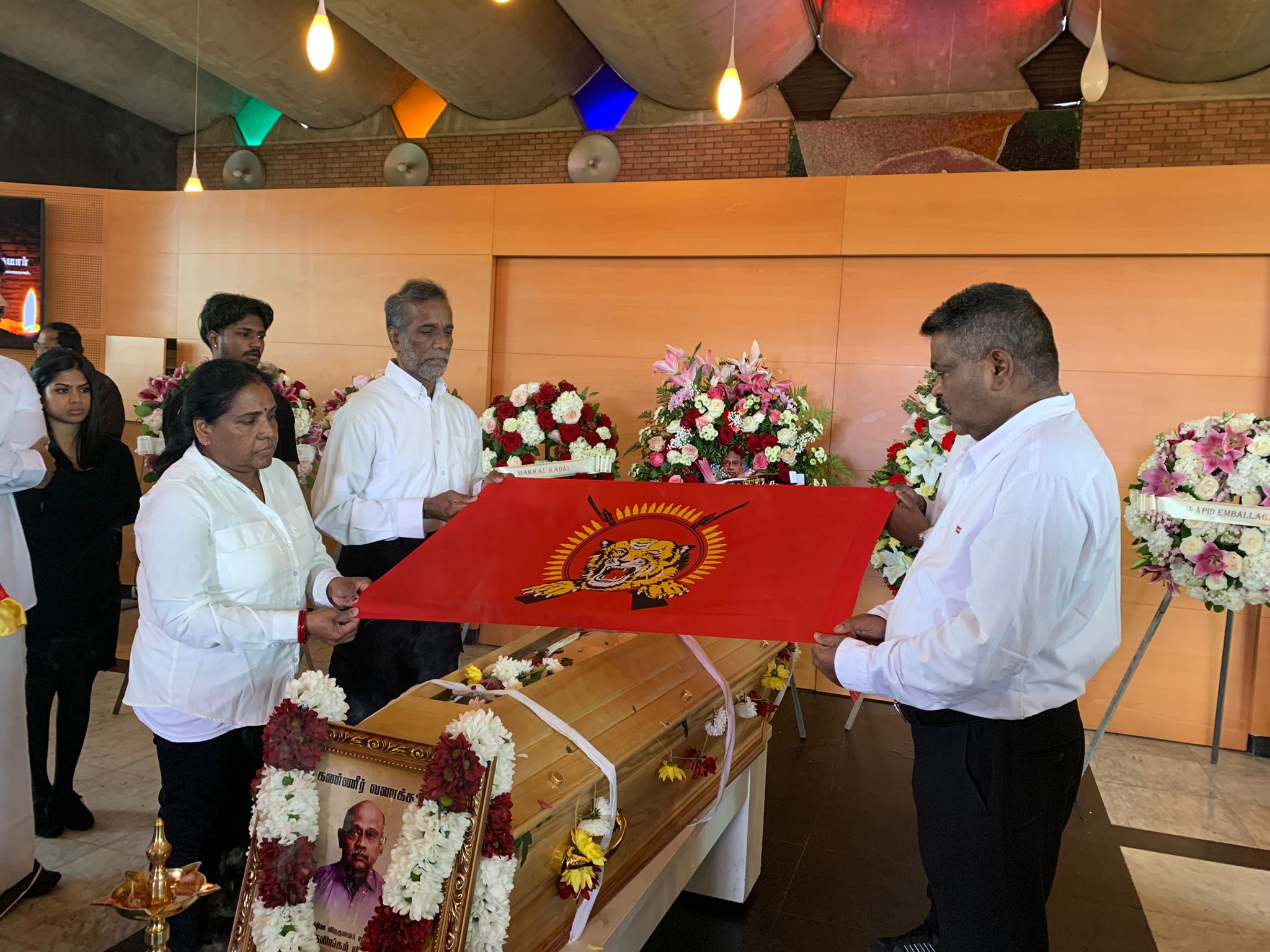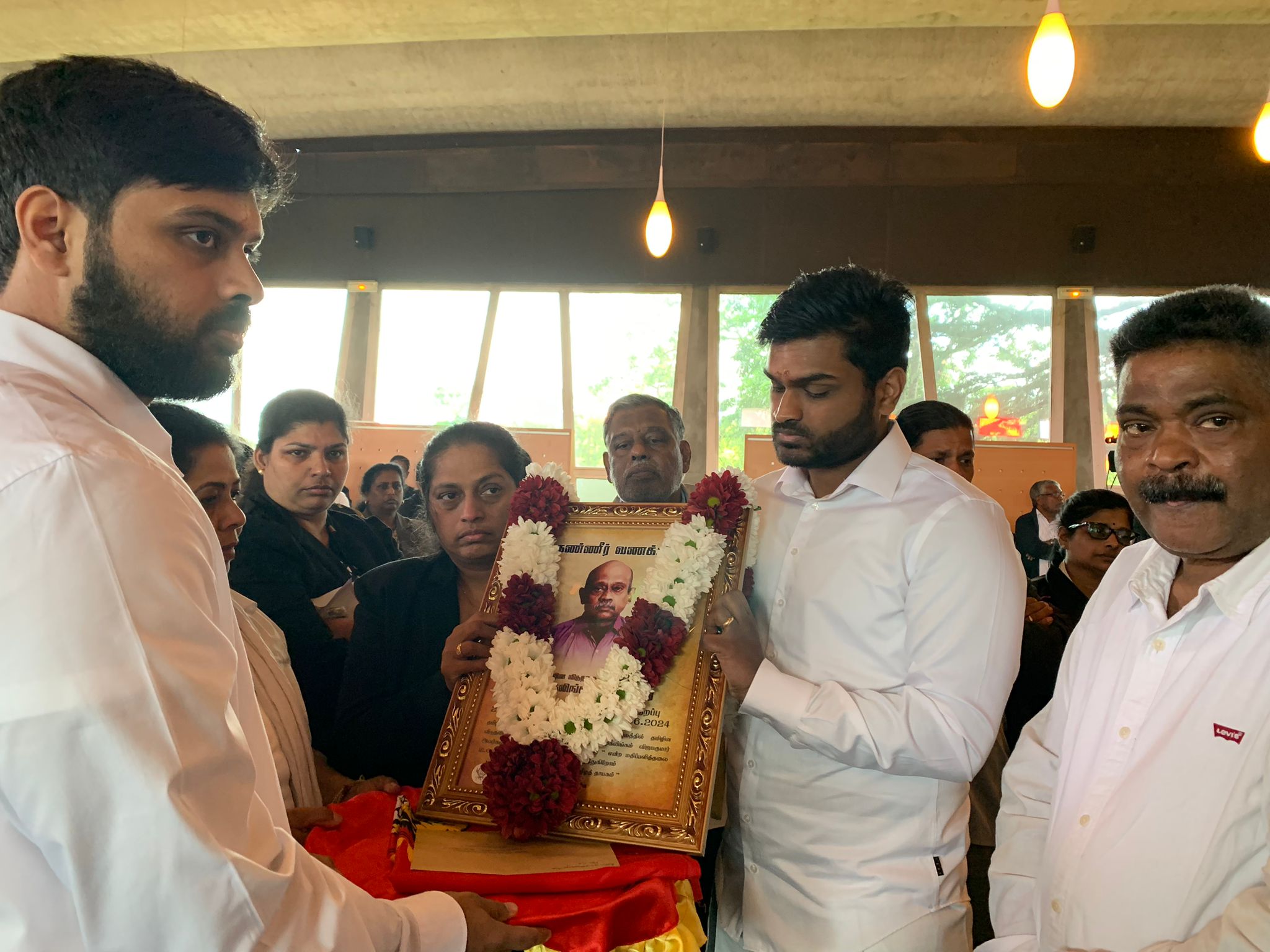கடந்த 05.06.2024 புதன்கிழமை பிரான்சில் சாவடைந்த பிரான்சு தமிழர் ஒருங்கிணைப்புக் குழுவின் ஆரம்பகால உறுப்பினரும், மூத்த தேசிய செயற்பாட்டாளருமாகிய விஜயகுமார் சண்முகலிங்கம் அவர்களுக்கு “தமிழின விடுதலைப் பற்றாளர்”என பிரான்சு தமிழர் ஒருங்கிணைப்புக் குழுவினால் மதிப்பளிப்பு செய்துவைக்கப்பட்டதுடன் அவரது திரு உடலுக்கு தமிழீழ தேசியக் கொடிபோர்த்தப்பட்டது.