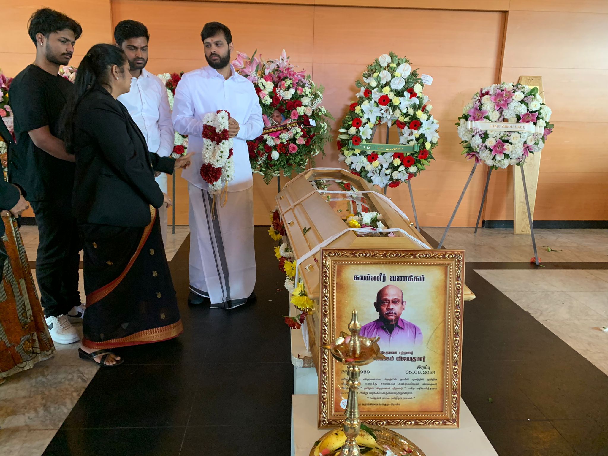 “தமிழின விடுதலைப் பற்றாளர்” விஜயகுமார் சண்முகலிங்கம் அவர்களின் இறுதி வணக்க நிகழ்வு இன்று (12.06.2024) புதன்கிழமை காலை 9.00 மணி முதல் பிரான்சில் Crématorium Les Joncherolles ,95 Rue Marcel Sembat, 93430 – Villetaneuse பகுதியில் இடம்பெற்றது.