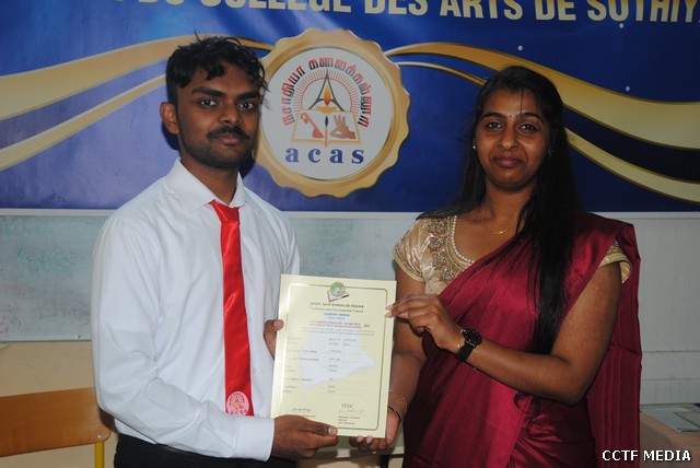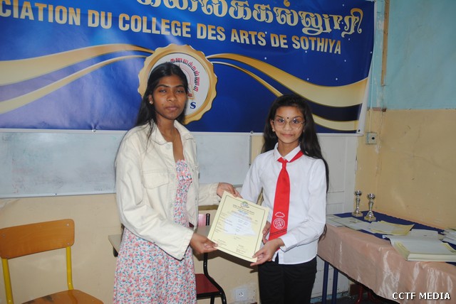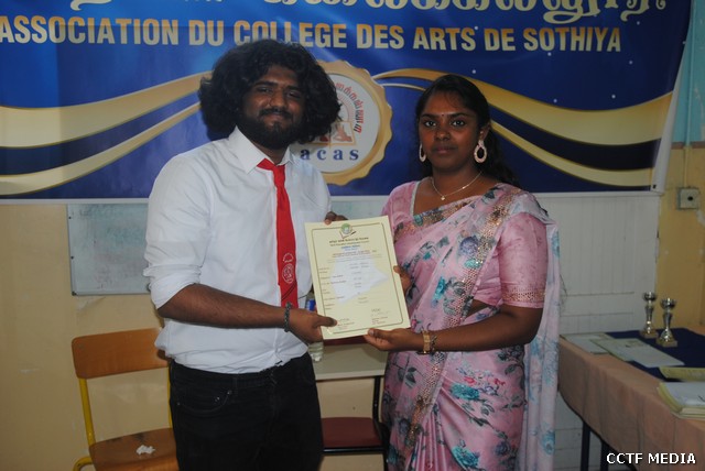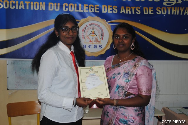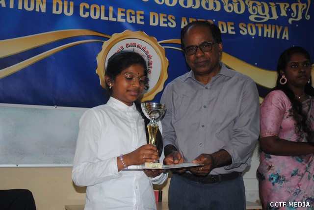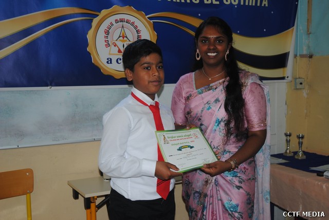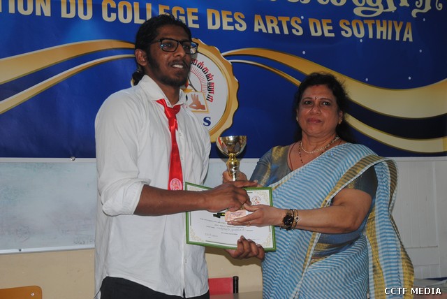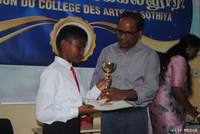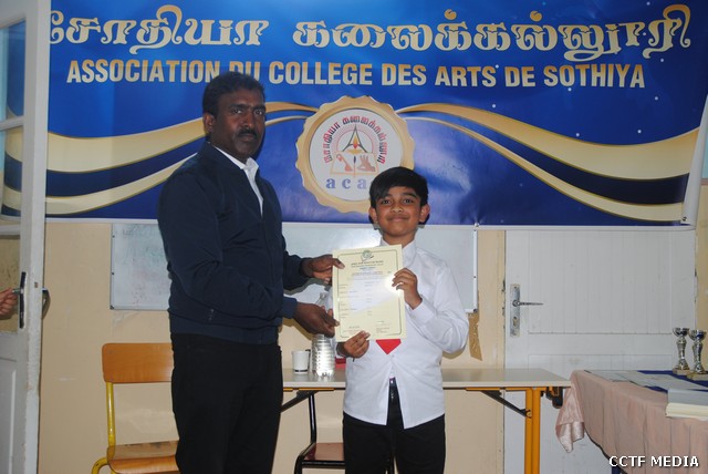 பிரதம நிர்வாகி திரு.செல்வகுமார் தலைமையில் இடம்பெற்ற இந்நிகழ்வு அகவணக்கத்தோடு ஆரம்பமானது. திருக்குறள் போட்டிகளில் வெற்றிபெற்ற மாணவர்களுக்கும் தமிழ்மொழி பொதுத்தேர்வு மாணவர்களுக்கும் சான்றிதழ்கள்,வெற்றிக் கிண்ணங்கள் வழங்கி மதிப்பளிக்கப்பட்டது. மாணவர்களுக்கான மதிப்பளித்தலை தமிழ்ச்சோலை தலைமைப் பணியகத்தின் சார்பில் கலந்துகொண்ட திரு.காணிக்கைநாதன் அவர்களோடு, சோதியா கலைக்கல்லூரியின் ஆசிரியர்கள், பிரதம நிர்வாகி திரு.செல்வகுமார், ஏனைய நிர்வாகிகள் ஆகியோர் வழங்கியிருந்தனர்.