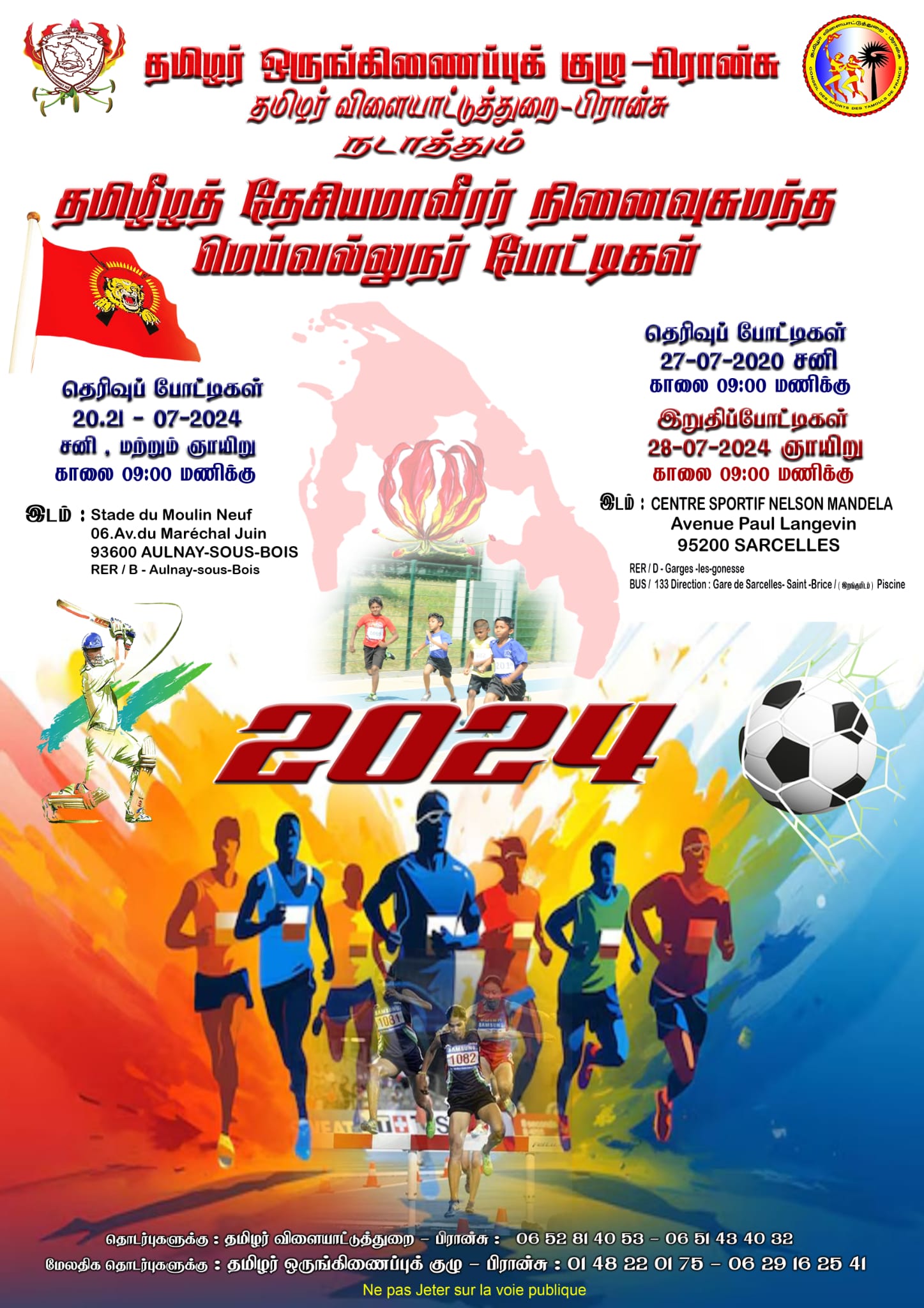 27ஆம் நாட்களில் தெரிவுப்போட்டிகளும் 28.07.2024 ஞாயிற்றுக்கிழமை இறுதிப்போட்டிகளும் Centre sportif Nelson Mandela Avenue Paul Langevin 95200 SARCELLES என்னும் இடத்தில் நடைபெறவுள்ளது.