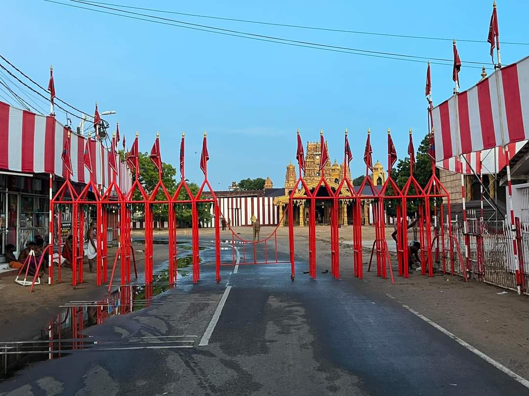 அதுபோல் ஆலய பின்பக்கமாக பருத்தித்துறை வீதி முழுவதுமாக இம்முறை மறிக்கப்பட்டுள்ளது. ஆலயத்திற்கு வருகின்ற பக்தர்கள் போய்வருவதற்கான பாதை இல்லாமல் முற்றுமுழுதாகாக தடைசெய்யப்பட்டுள்ளது.